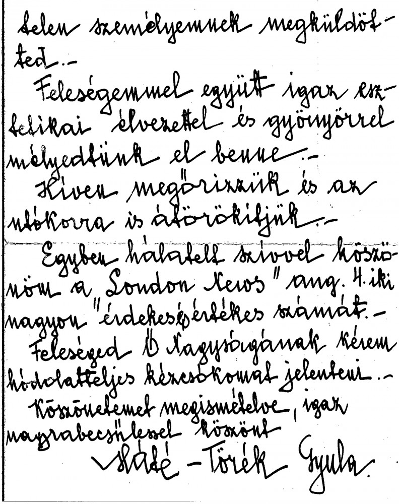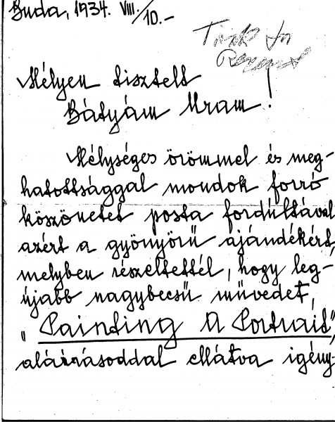 Máté-Törék thanks de László for sending a signed copy of “Painting a Portrait” and a copy of the "London News".