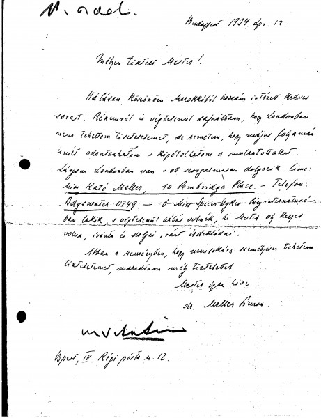 Meller hopes to see de László in London in May; he asks him to contact his daughter who is studying there.
