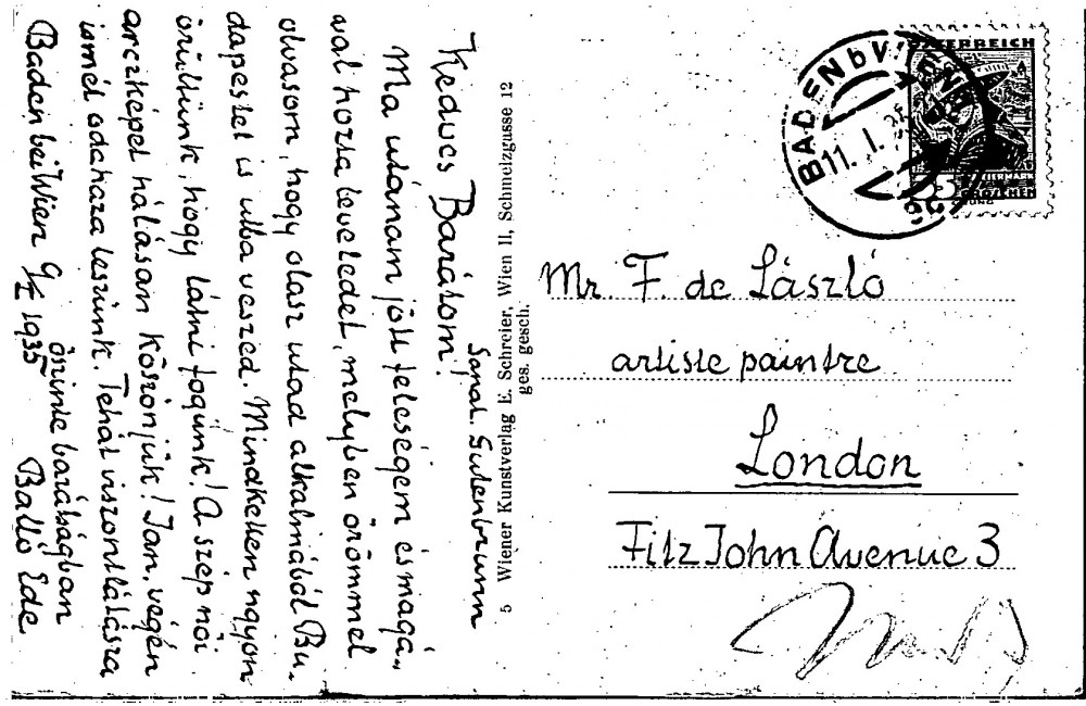 Postcard from Ede Balló to de László, Hungarian & German Letters 1934, 035-0080