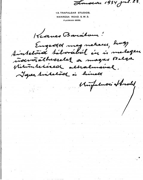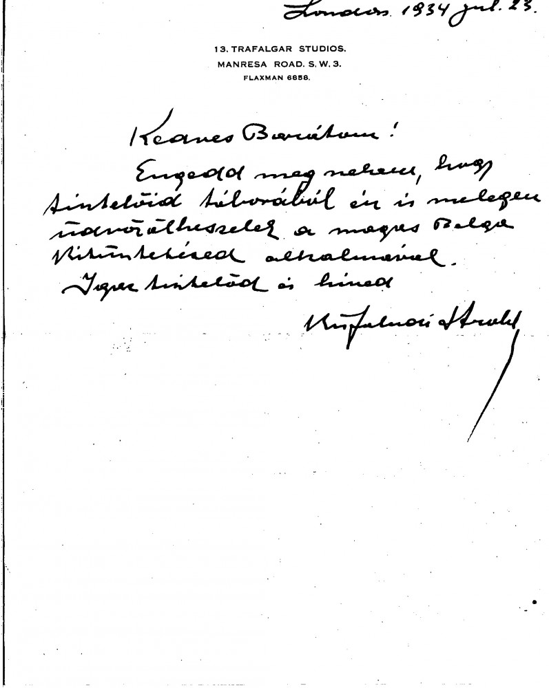 Letter from Zsigmond Kisfaludi Strobl to de László, Hungarian & German Letters 1934, 035-0084