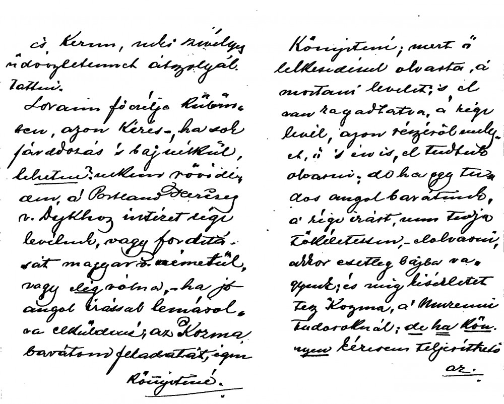 Harkányi requests a Hungarian/German translation of the Duke of Portland's letter to Van Dyck for Andor Kozma.