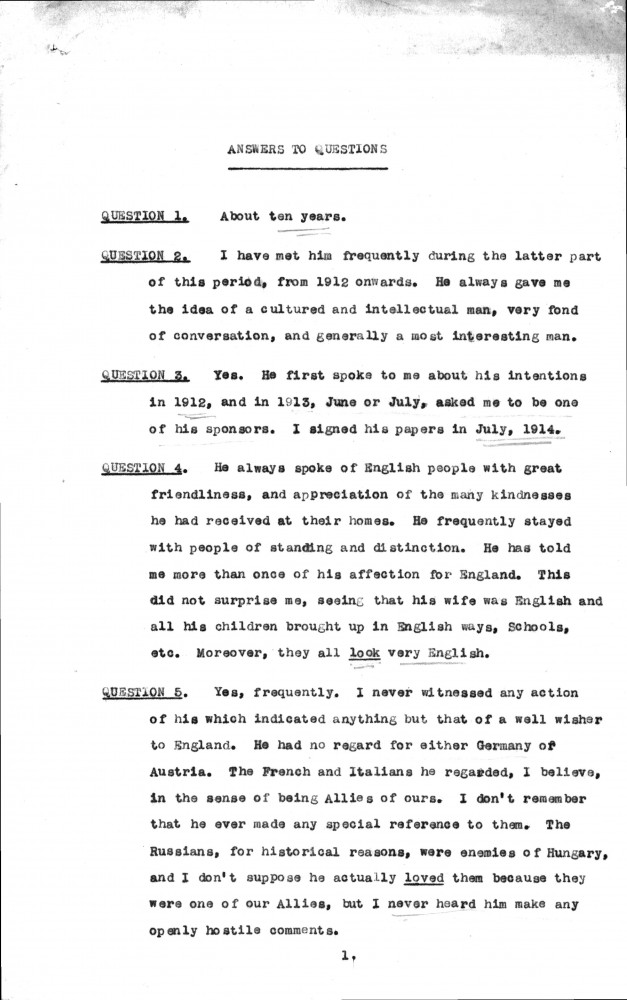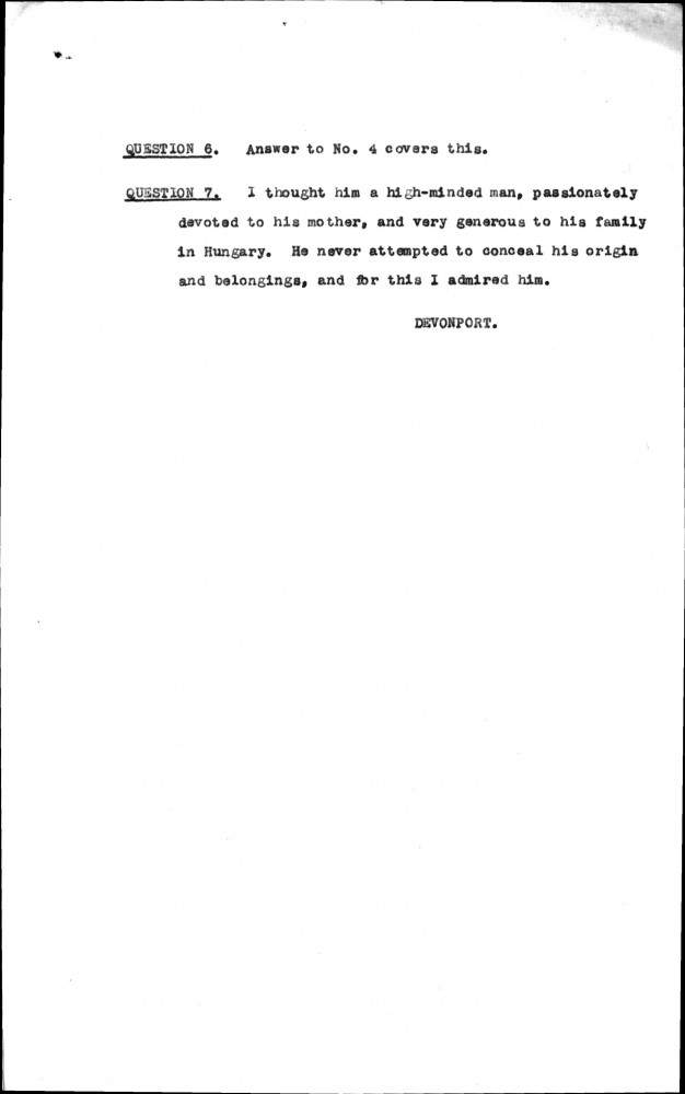 Lord Devonport character witness statement in defence of the artist for the Naturalization Committee [1919]