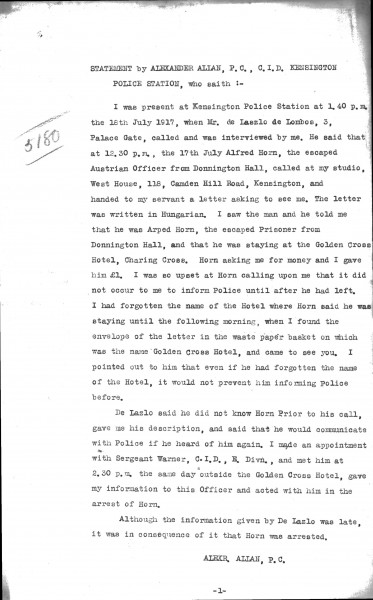 Undated statements by Alexander Allan, P.C., C.I.D., Kensington Police Station, and Percy Isaac, P.C.