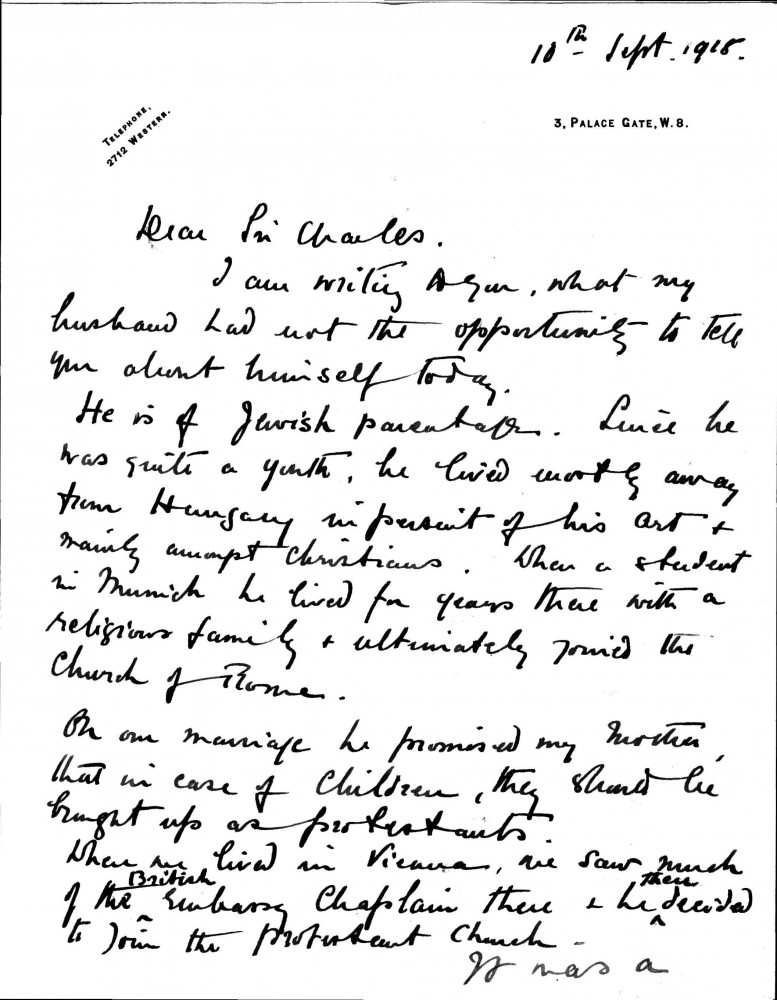 Letter from Lucy de László to Sir Charles Russell, Internment Material Folder 51, 166-0018