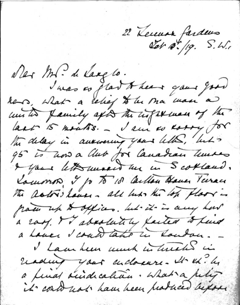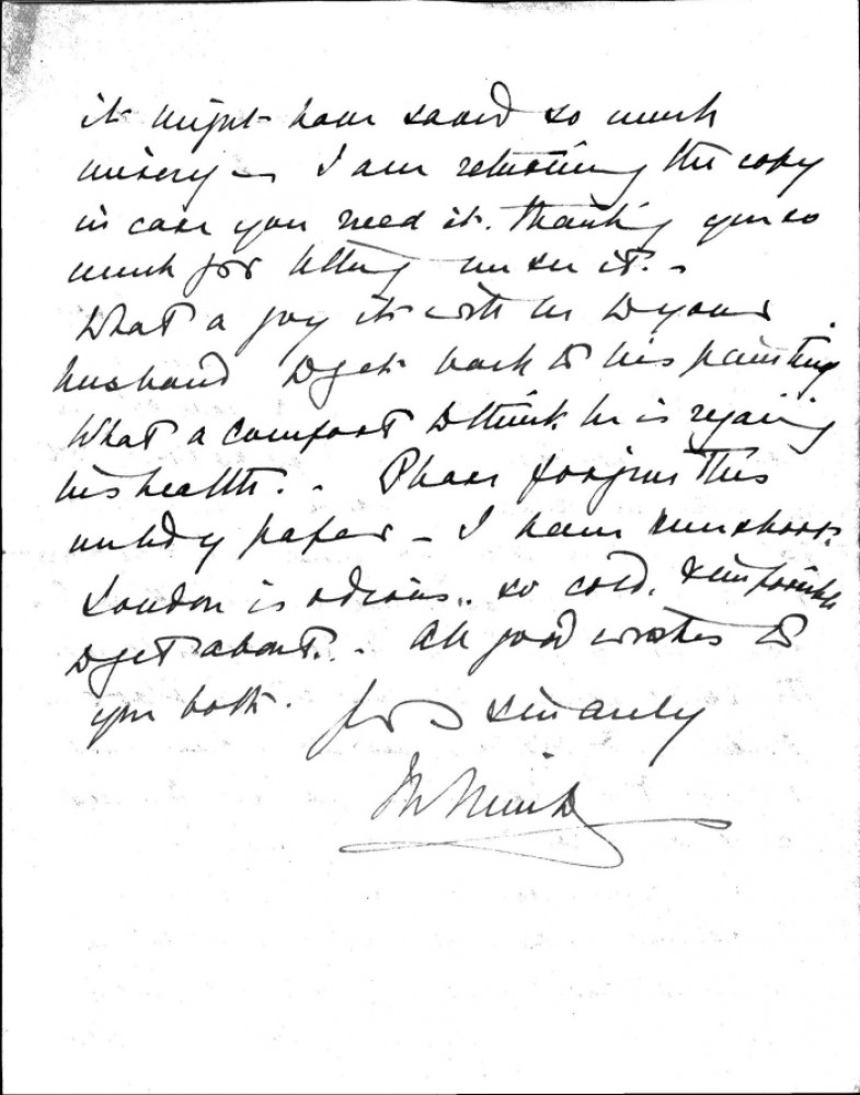 The sender sympathises with the de László family's plight during the artist's internment; reference to an enclosure, which would be a "final vindication", and would have "saved so much misery" if produced earlier