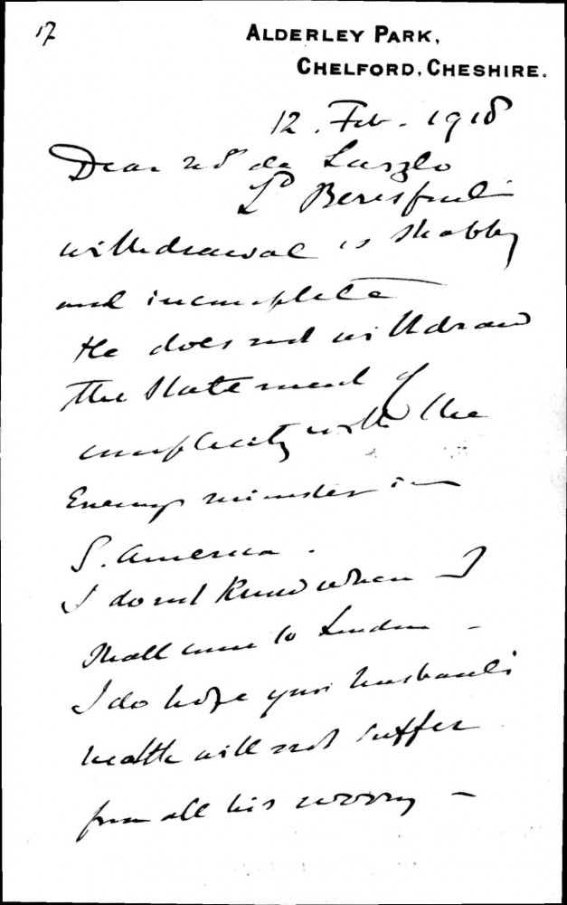 Letter Sheffield describes Lord Beresford's withdrawal as "shabby and incomplete"; he hopes de László's health is not suffering; Lord Selborne should have a medical certificate when he goes before Sir George Cave