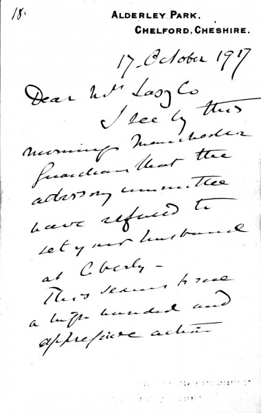 Partial letter from Lord Sheffield to Lucy de László, Internment Material Folder 51, 166-0043