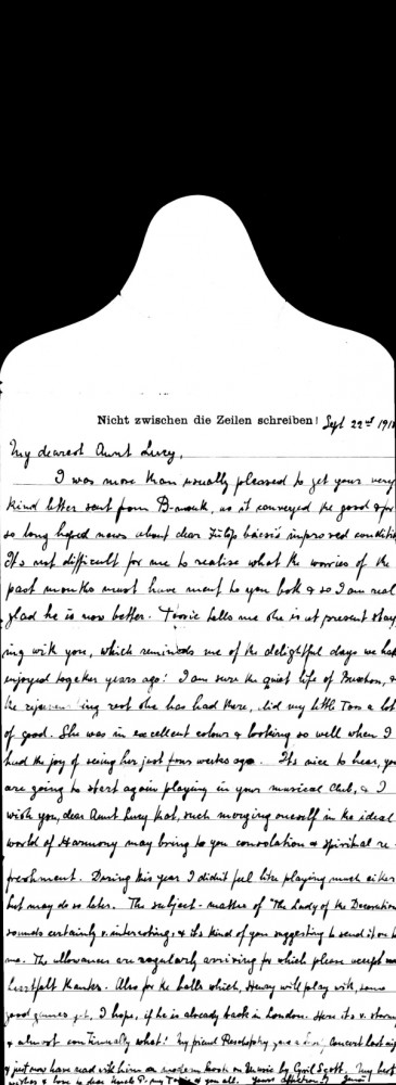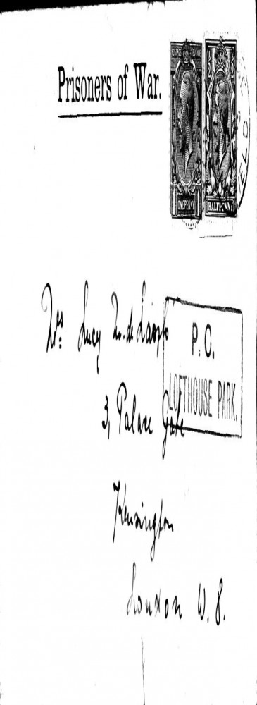 Letter from Weress to Lucy de László sent whilst a POW. He is glad de László's health is improving. Reference to someone [illegible name] who is staying with Lucy, possibly at Buxton. References to books and music. Thanks Lucy for the regular allowance.