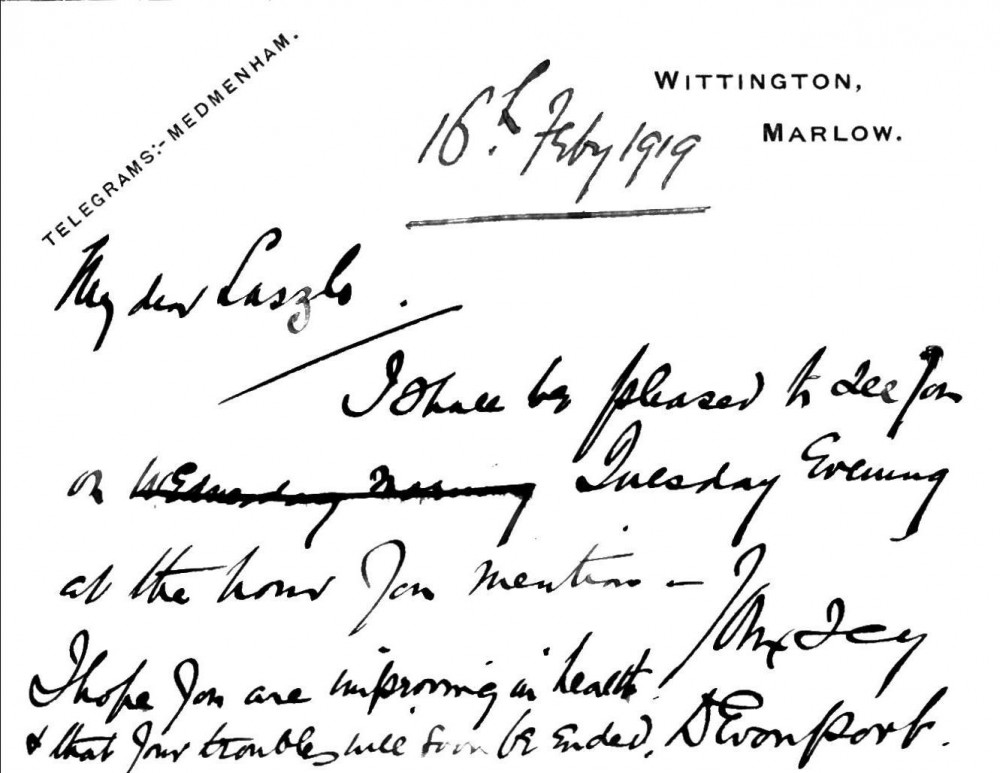 Previous See list Next 166-0067 de Laszlo Archive © de Laszlo Foundation 166-0067 16/02/1919 Arrangements to meet Accession number 166-0067 Type Letter Sender Devonport, Hudson Ewbanke Kearley, 1st Viscount (1856 - 1934) Recipient László, Philip Alexius de (1869 - 1937) Close 166-0067 Letter from Lord Devonport to de László, Internment Material Folder 51, 166-0067