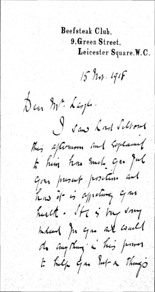 Charles F. Gill has met with Lord Selborne regarding a move for de László from the nursing home to the countryside on the grounds of ill-health. Gill believes the timing is not right. Item includes a press cutting concerning who will succeed George Cave as the next Home Secretary