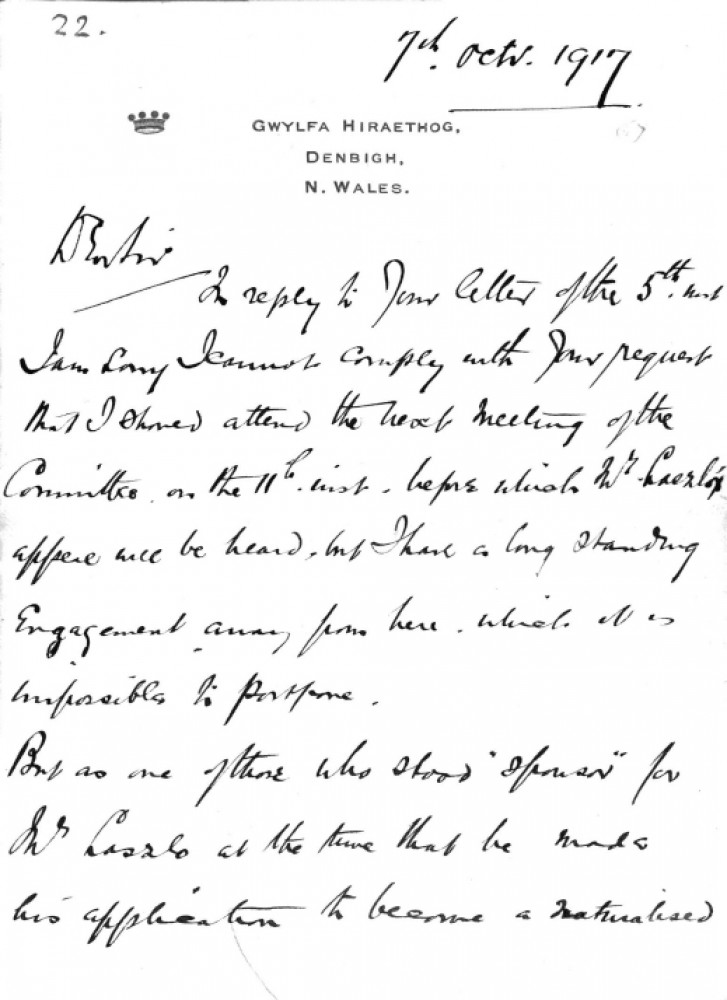 Devonport is unable to attend de László's appeal. He affirms the artist's loyalty to England and believes he has suffered enough for the unpremeditated "indiscretions" he committed.
