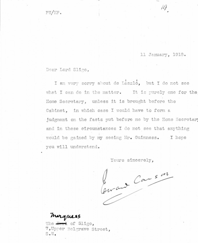 Unless de László's case is brought before the Cabinet, it is a matter solely for the Home Secretary; there would be nothing gained from his meeting with Howard Guinness.