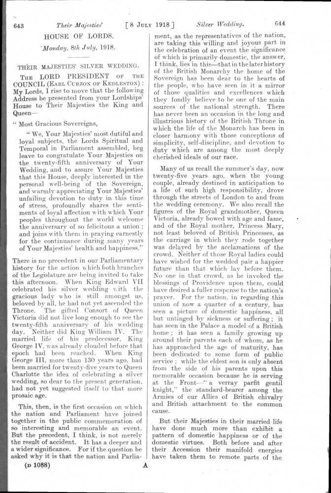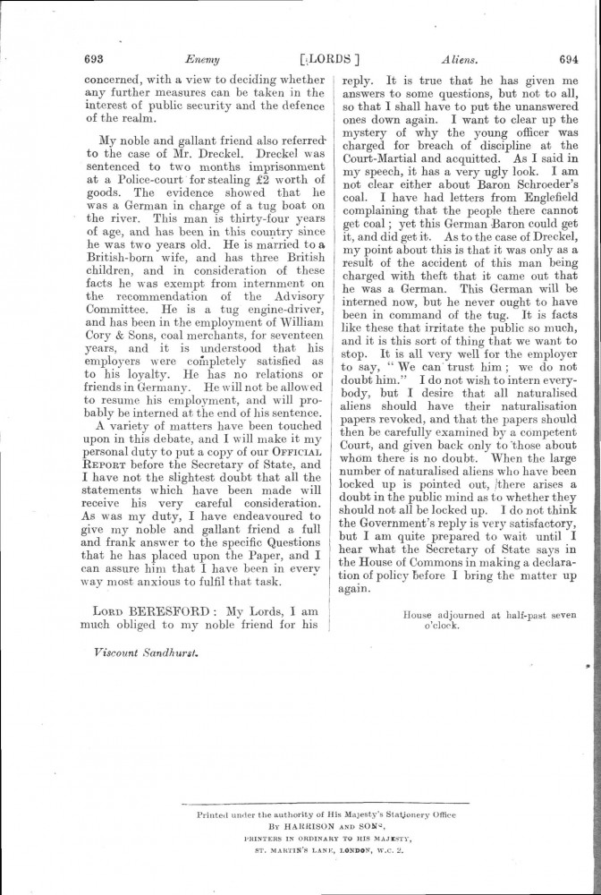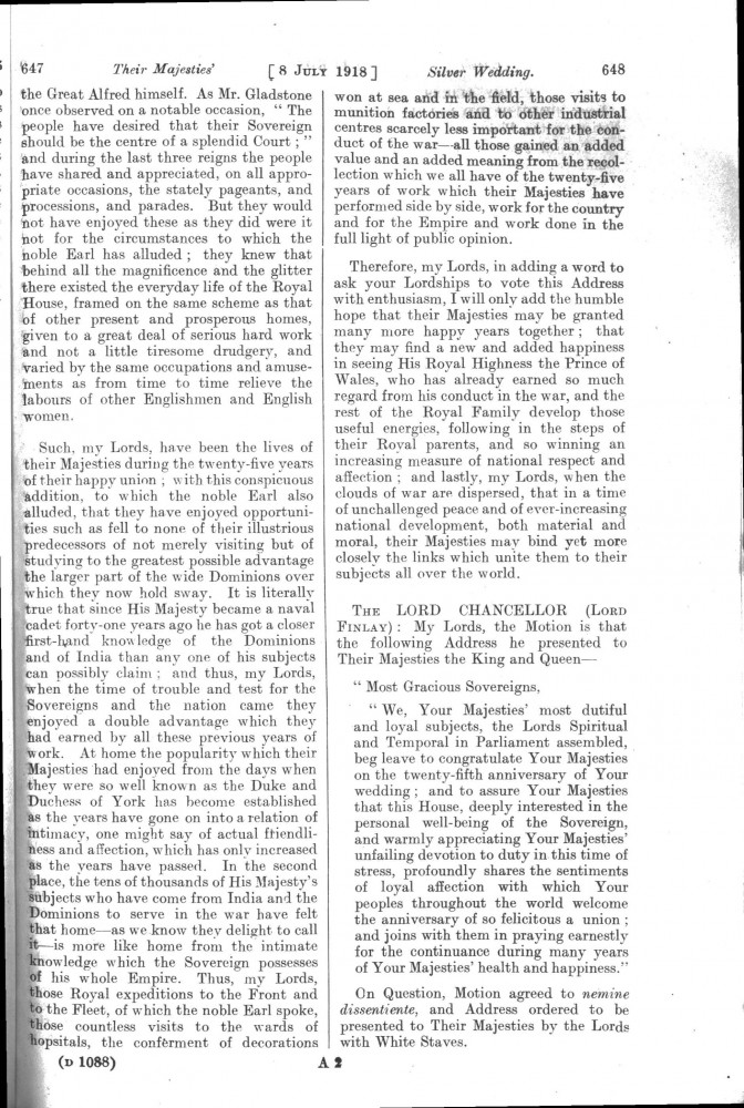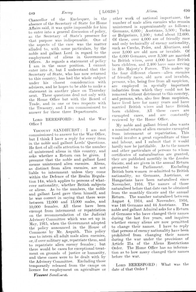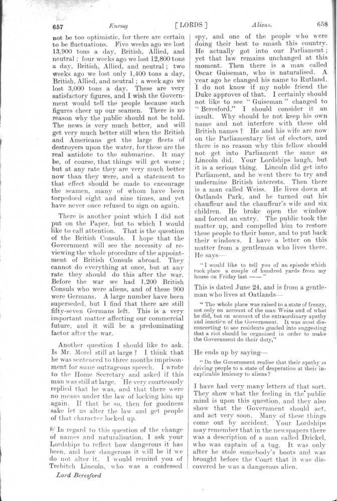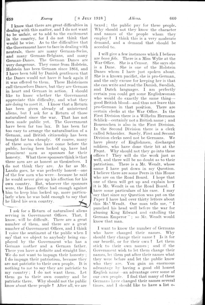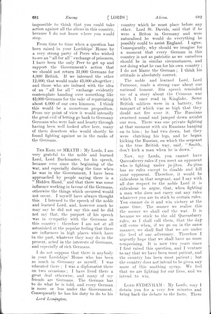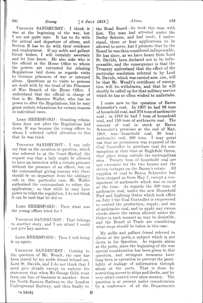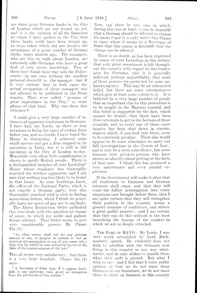 Parliamentary Debates. House of Lords. Monday, 8 July 1918. Vol. 30, No. 47. Official Report [unrevised]. See column 659.