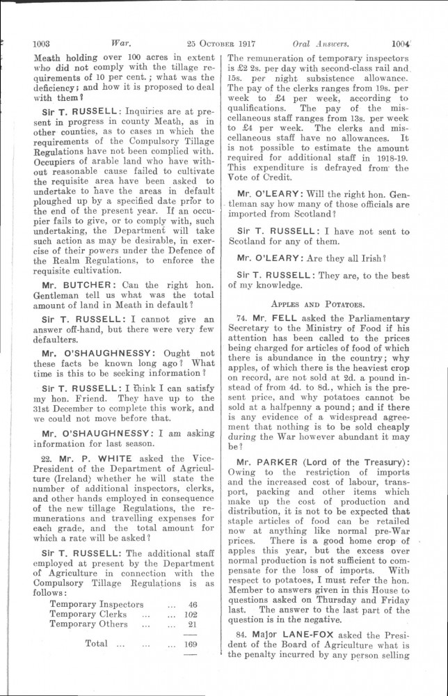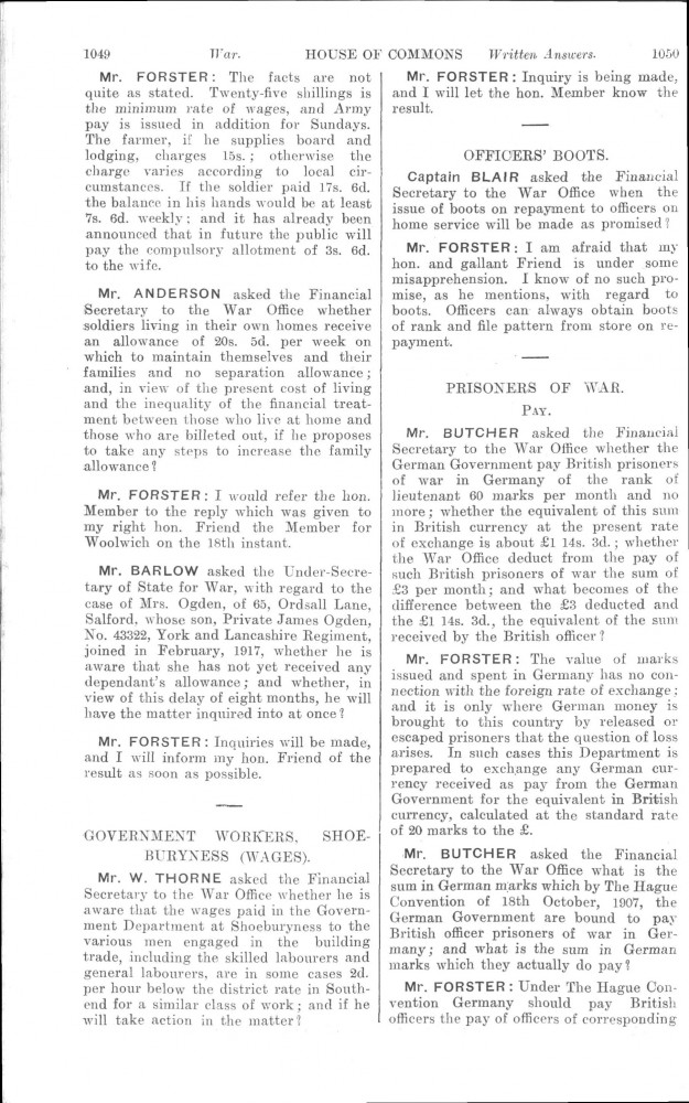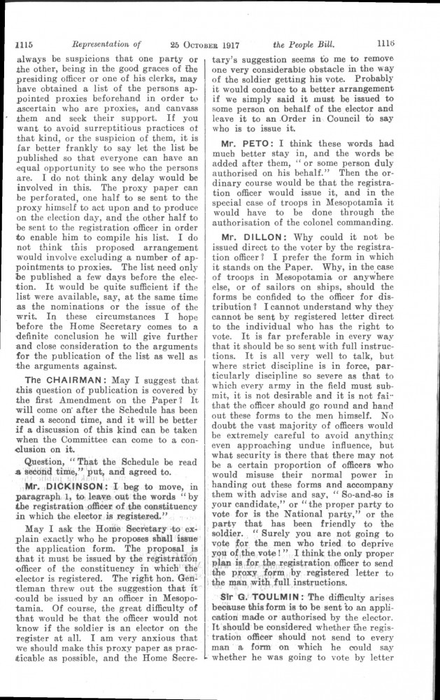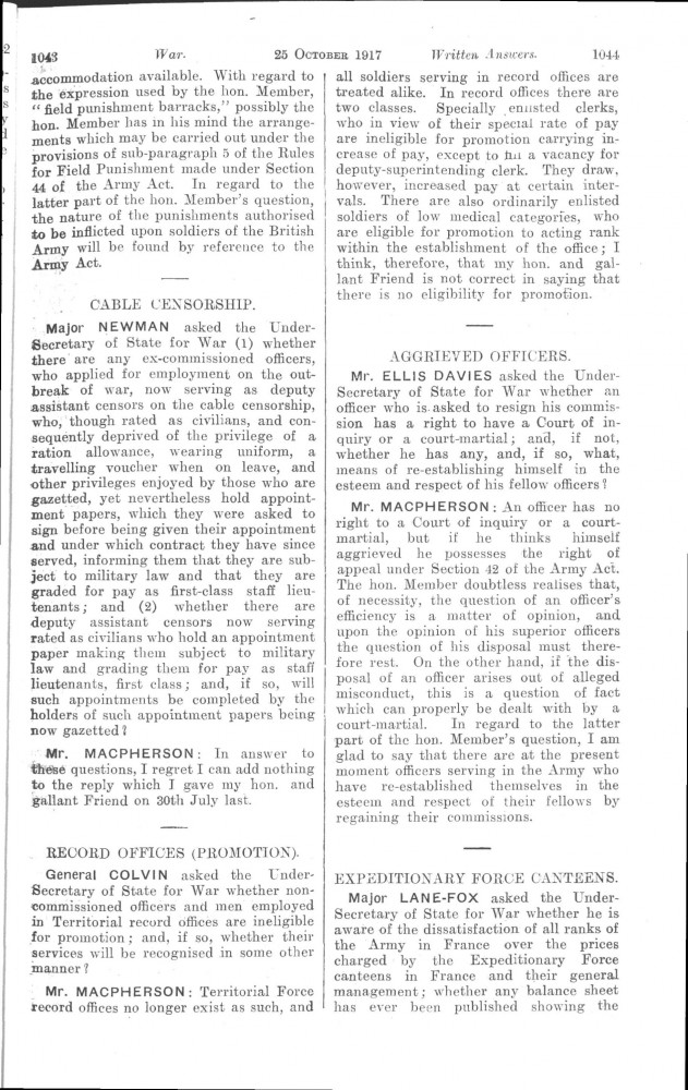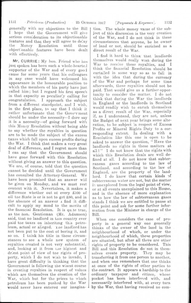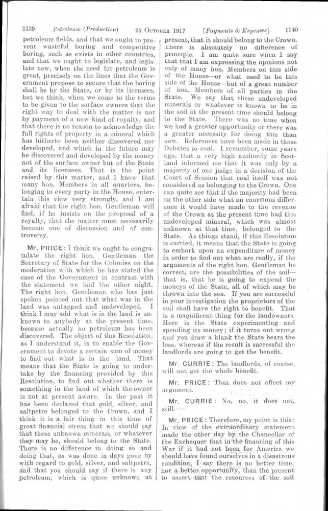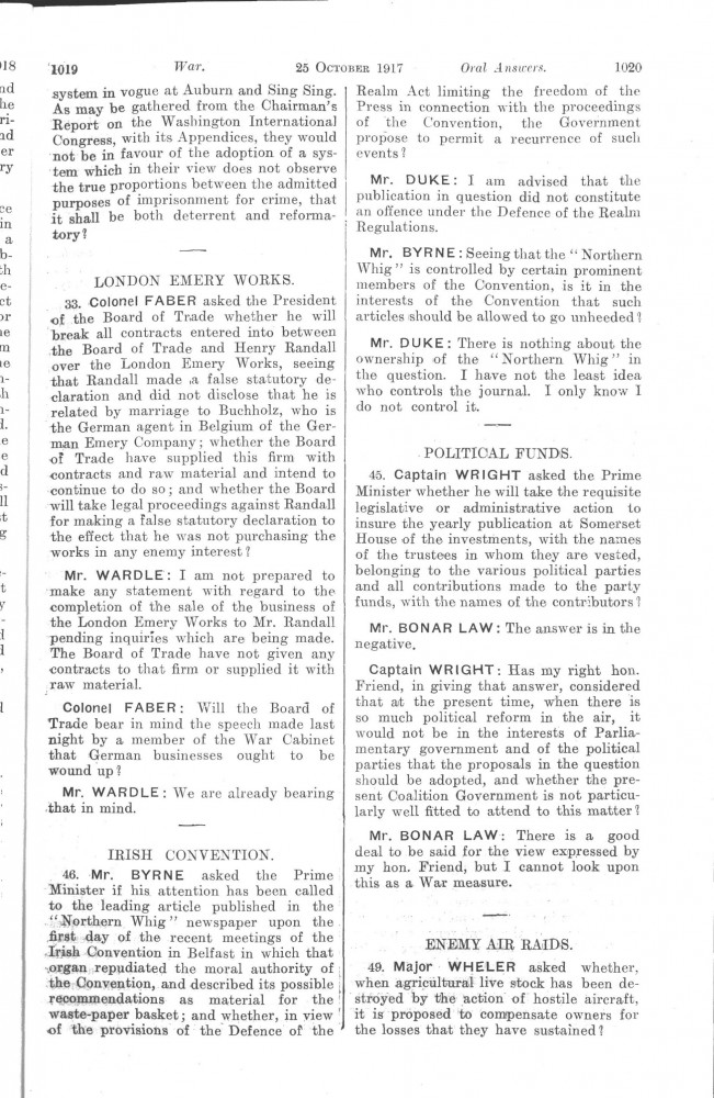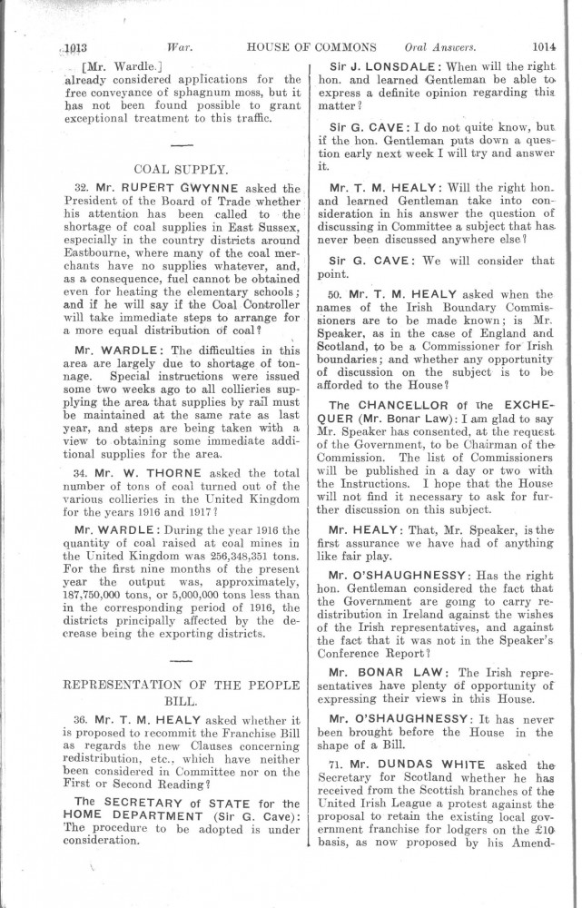 Parliamentary Debates. House of Commons. Thursday, 25 October 1917. Vol. 98, No. 129. Official Report. DLA167-0008 contains the same report.