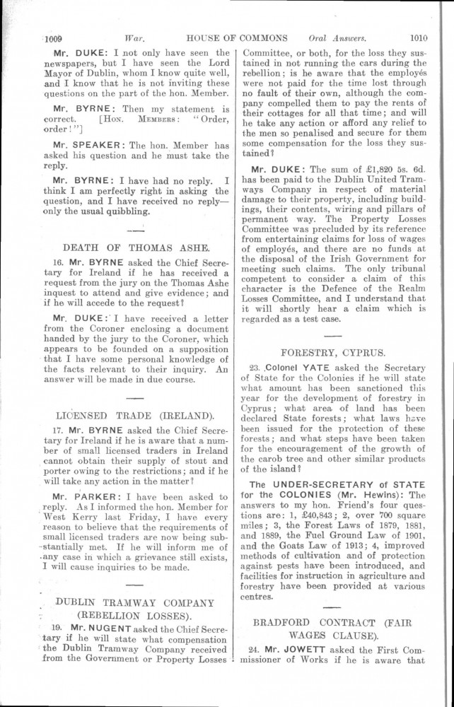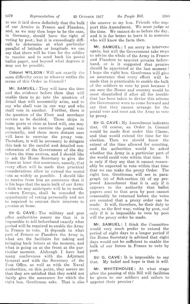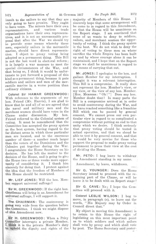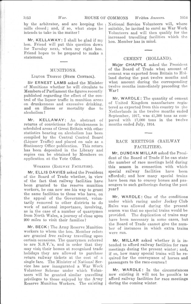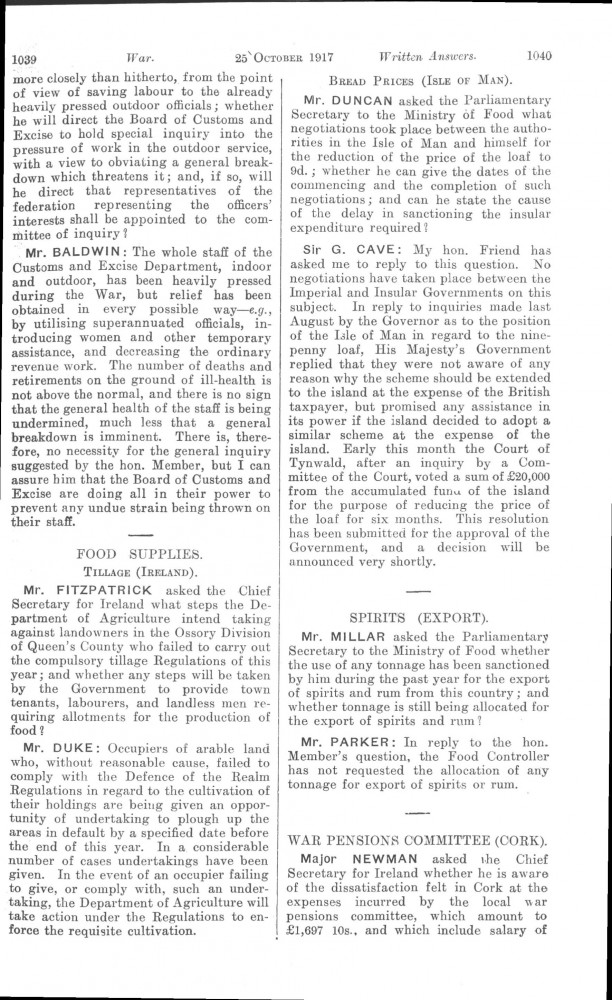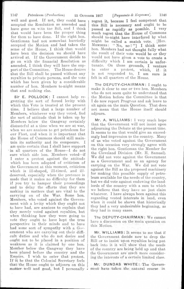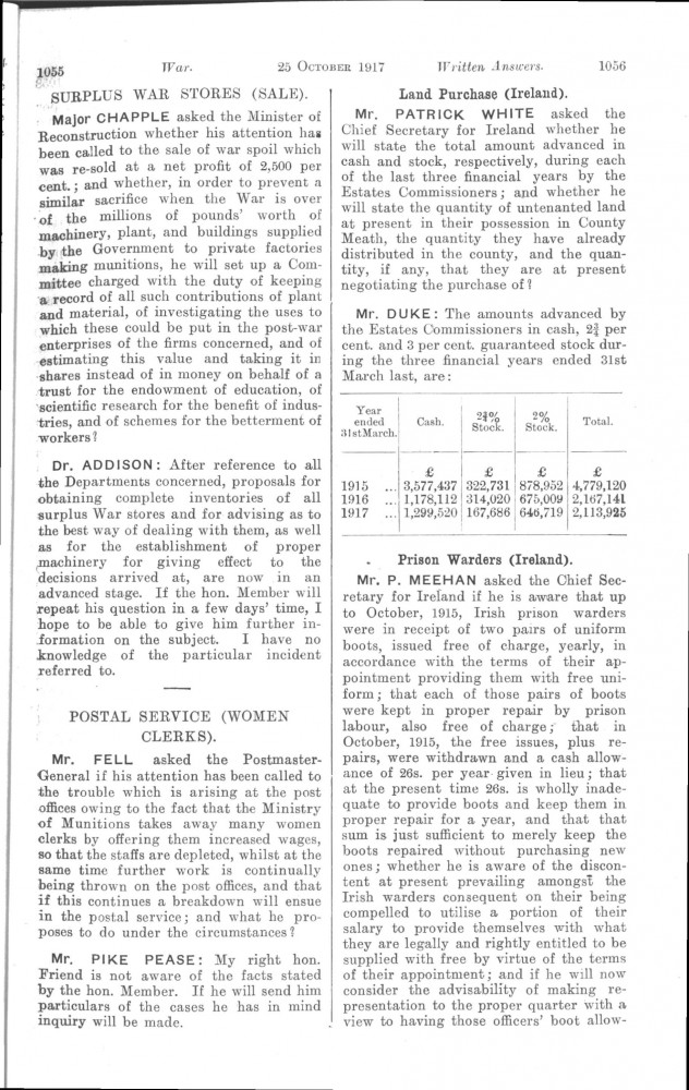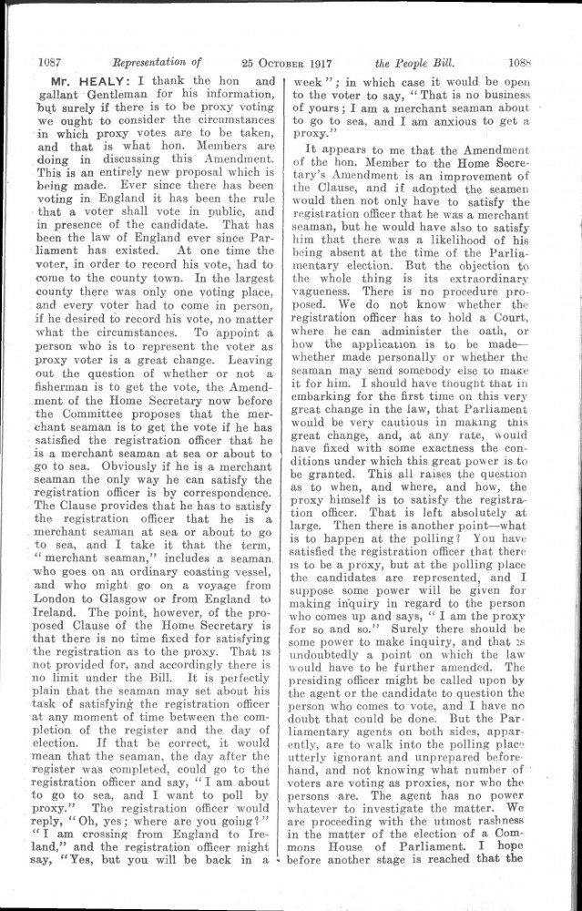 Parliamentary Debates. House of Commons. Thursday, 25 October 1917. Vol. 98, No. 129. Official Report. DLA167-0008 contains the same report.
