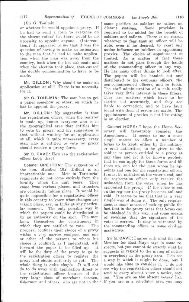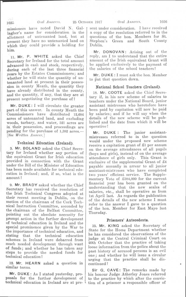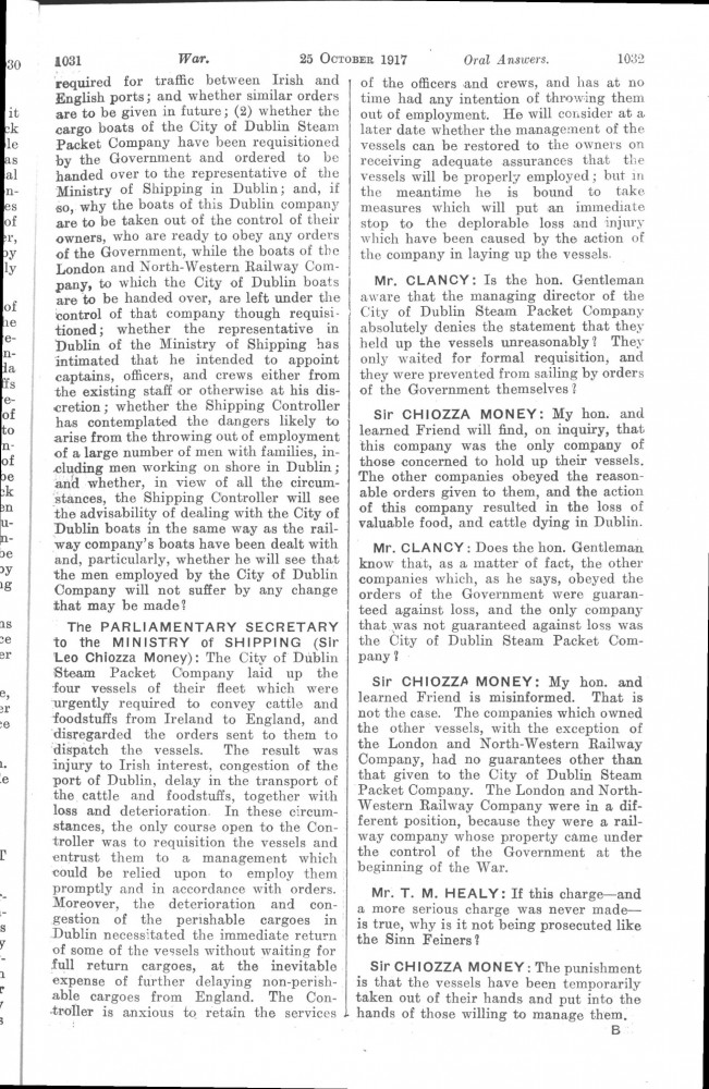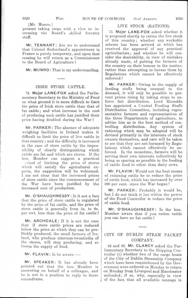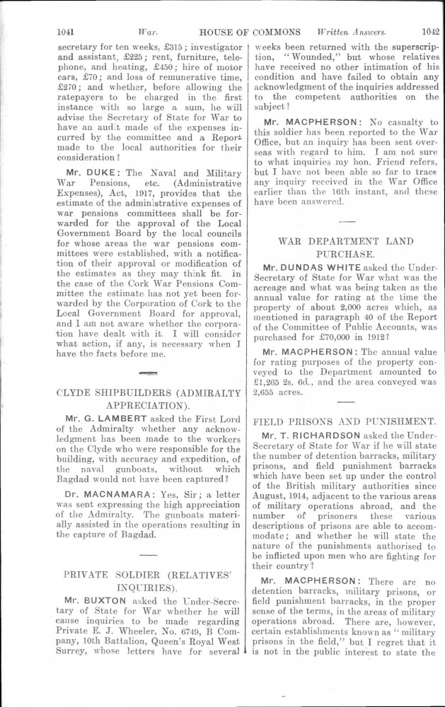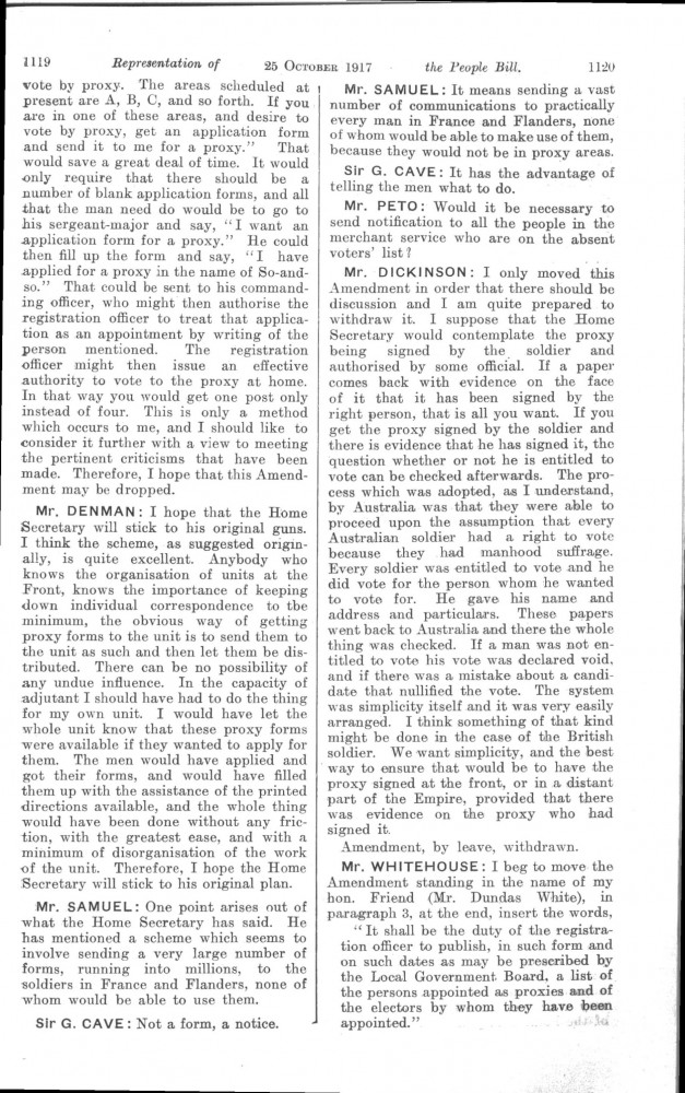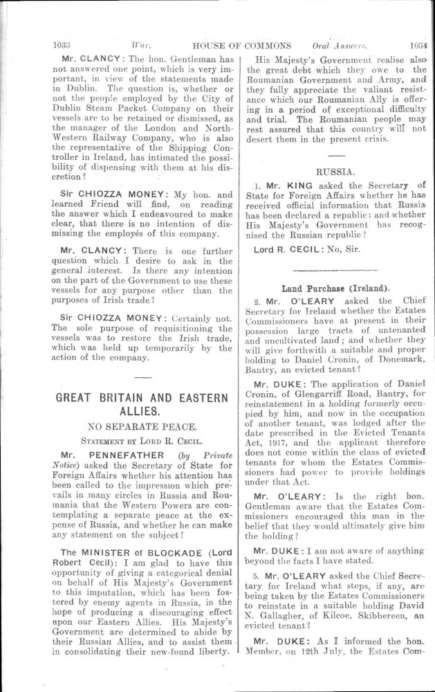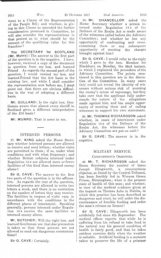 Parliamentary Debates. House of Commons. Thursday, 25 October 1917. Vol. 98, No. 129. Official Report. DLA167-0008 contains the same report.