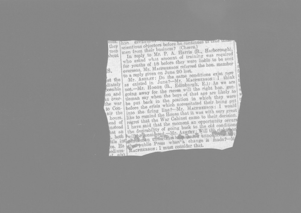 Previous See list Next 167-0016 de Laszlo Archive © de Laszlo Foundation 167-0016 Unidentified publication. Question in the parliamentary debates concerning the training required for youths before being sent overseas. Accession number 167-0016 Type Press cutting Close 167-0016 Internment Material Folder 53, 167-0016