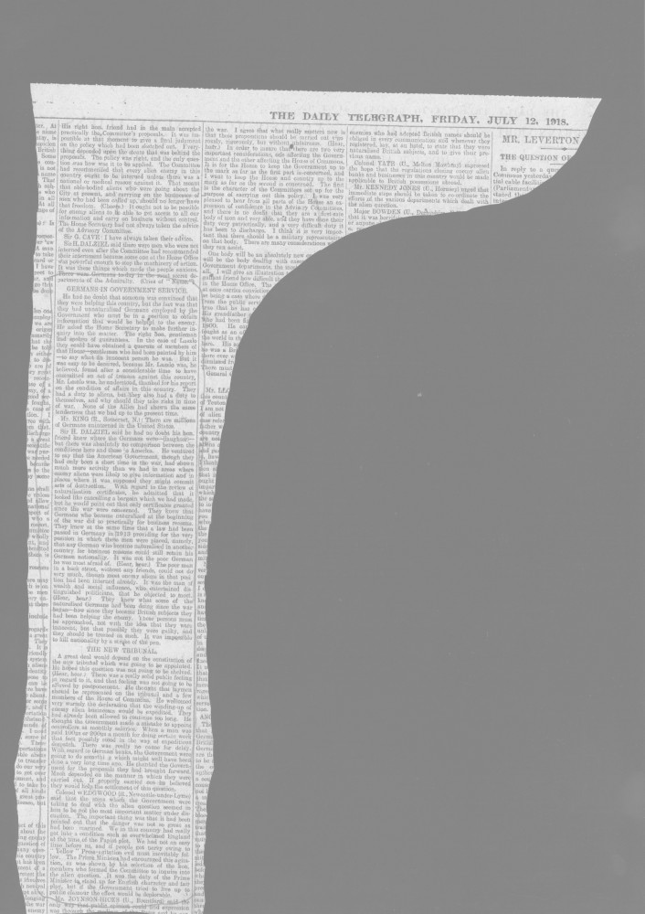 Previous See list Next 167-0024 de Laszlo Archive © de Laszlo Foundation 167-0024 12/07/1918 Daily Telegraph. Debate and proposals concerning "the question of enemy aliens". Accession number 167-0024 Type Press cutting All pages Internment Material Folder 53, 167-0024 See all Close 167-0024 Internment Material Folder 53, 167-0024 167-0024 Internment Material Folder 53, 167-0024
