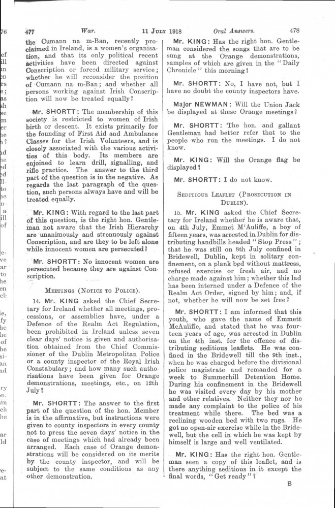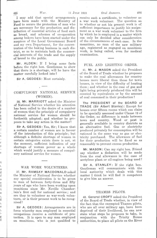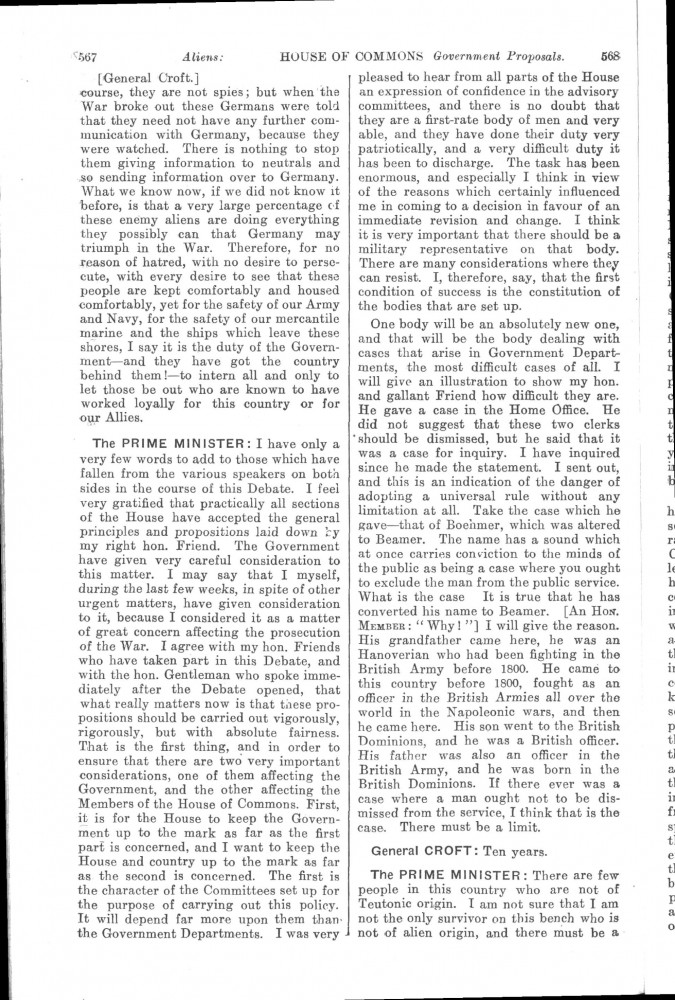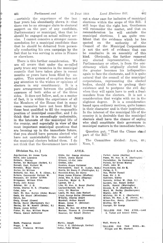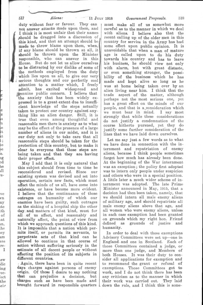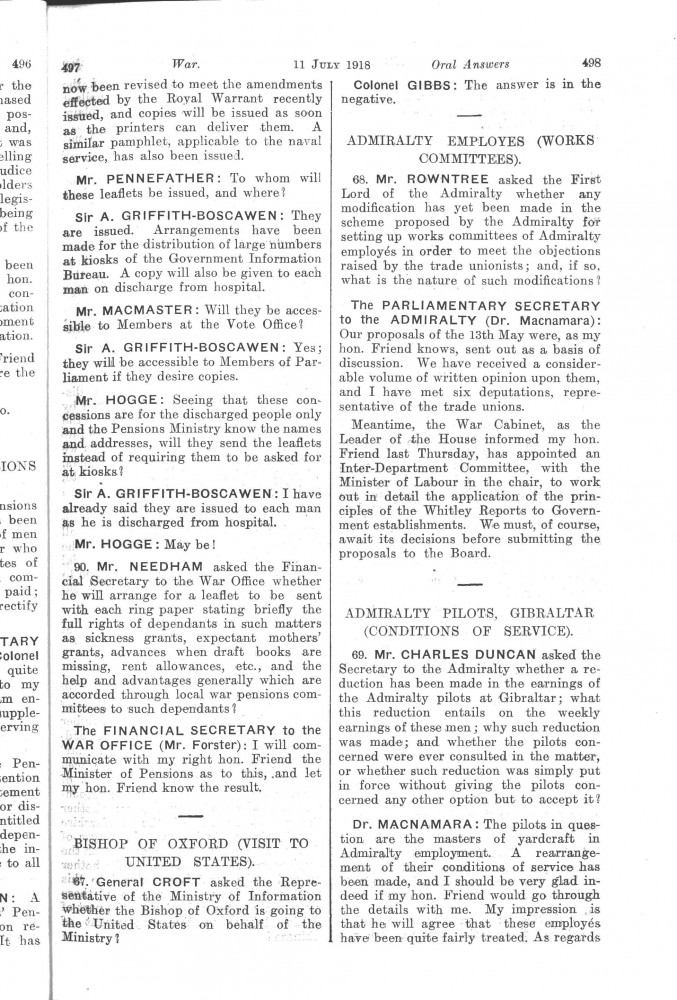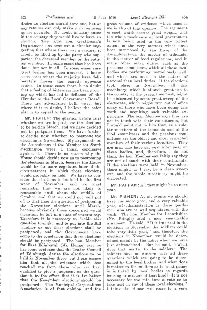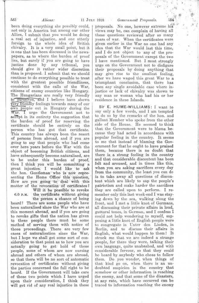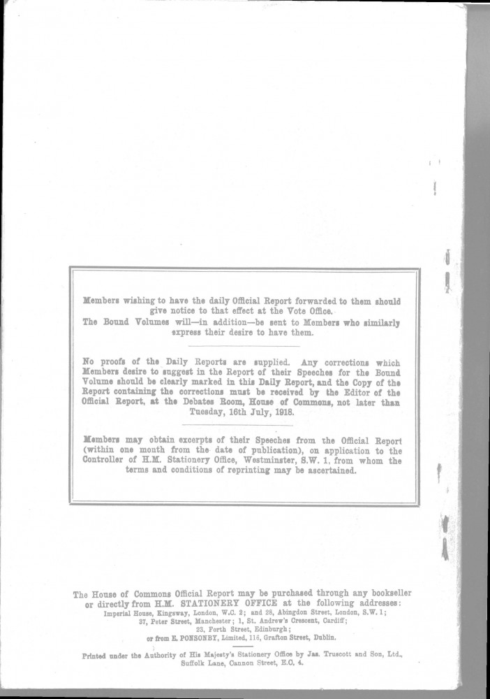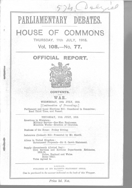 Parliamentary Debates. House of Commons. Thursday, 11 November 1918. Vol. 108, No. 77. Official Report. Columns 534, 535 marked up.
