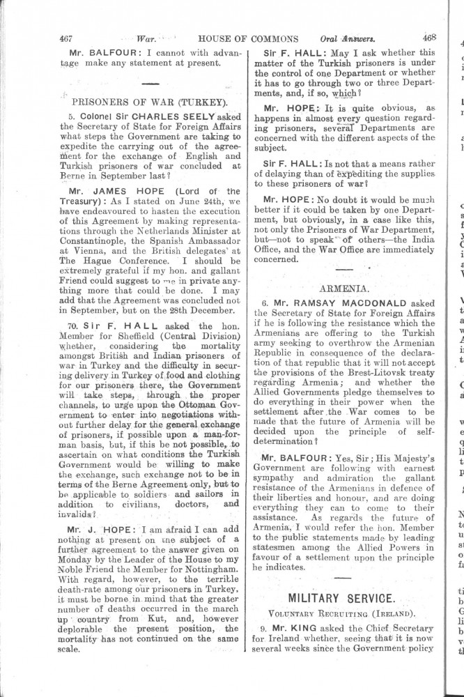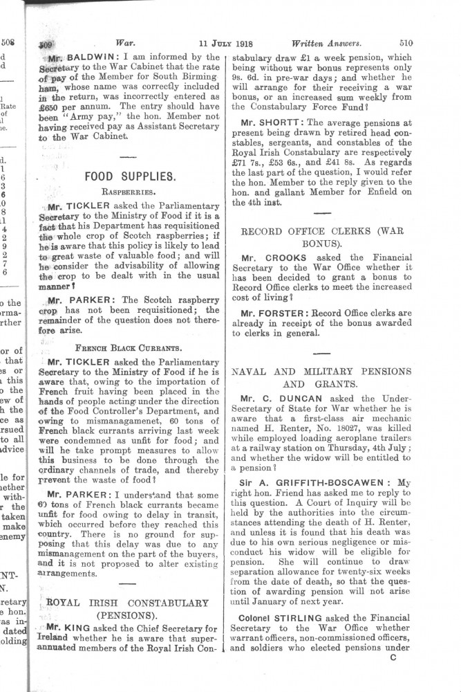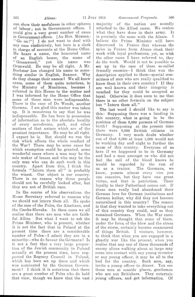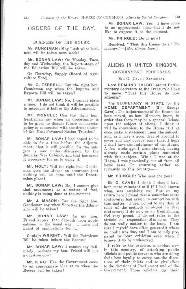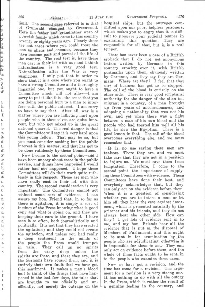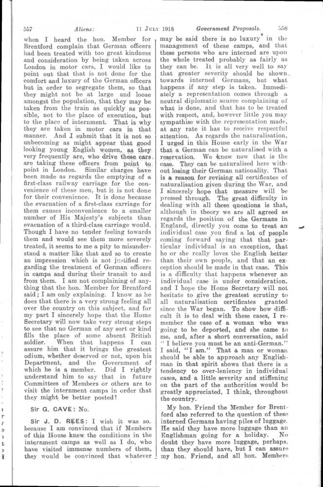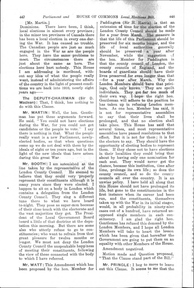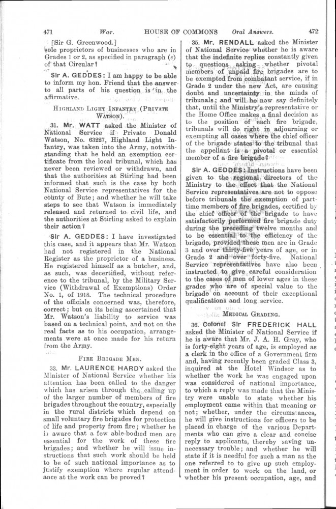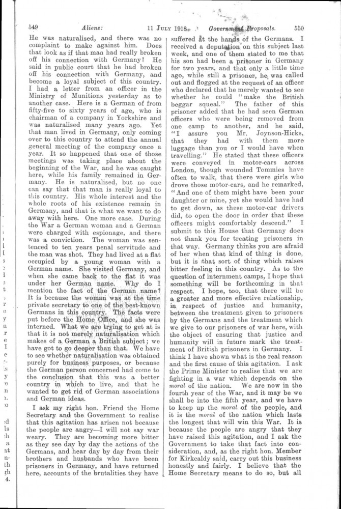 Parliamentary Debates. House of Commons. Thursday, 11 November 1918. Vol. 108, No. 77. Official Report. Columns 534, 535 marked up.
