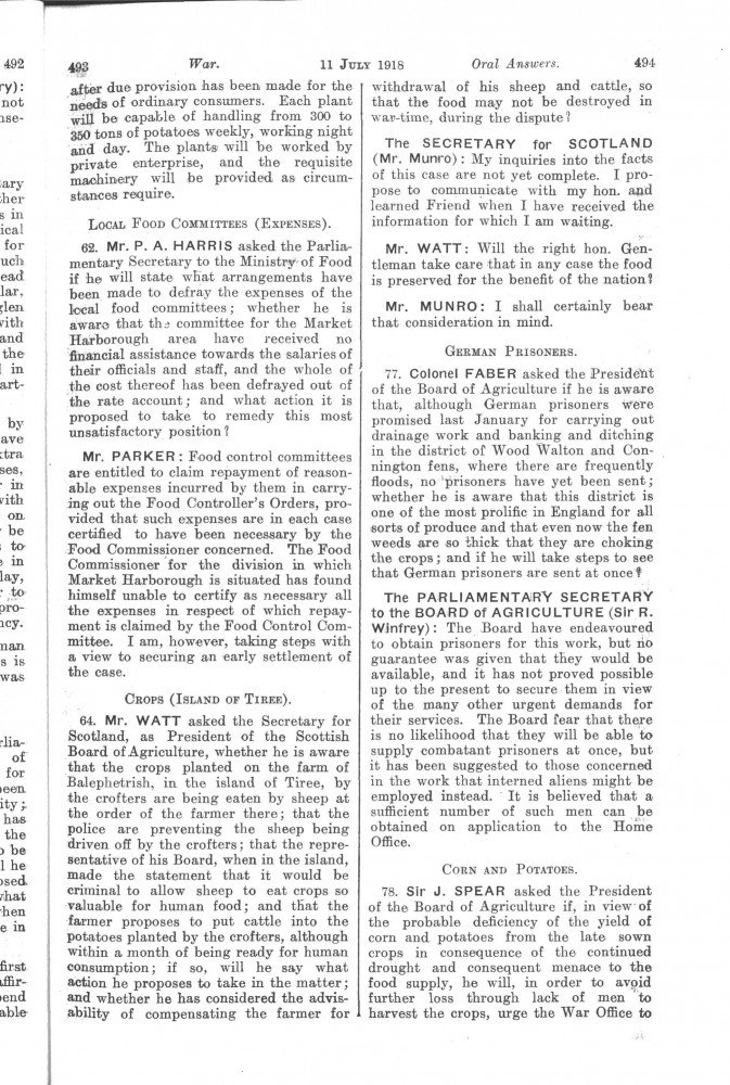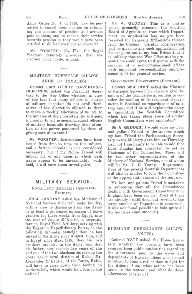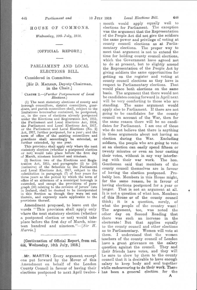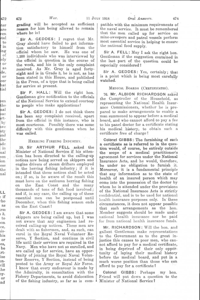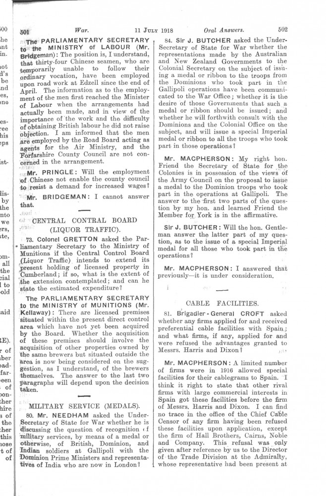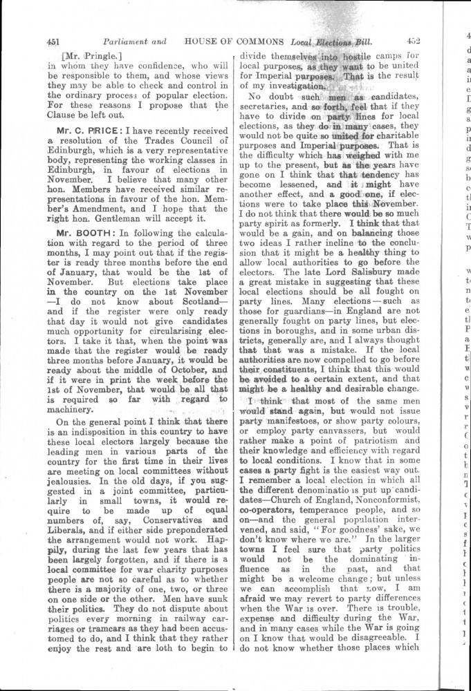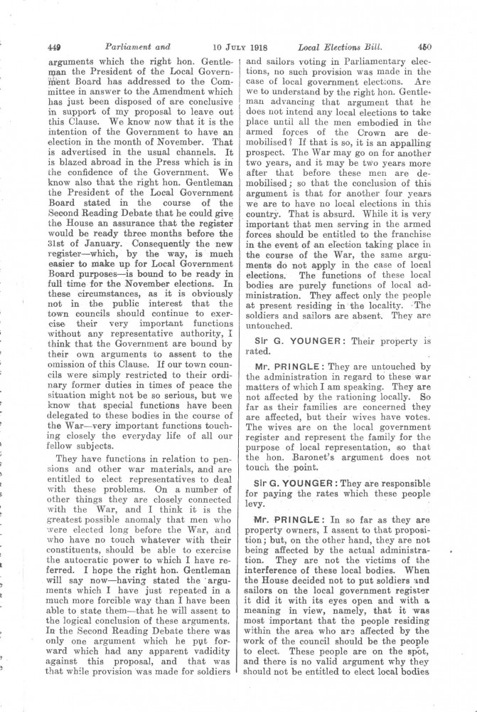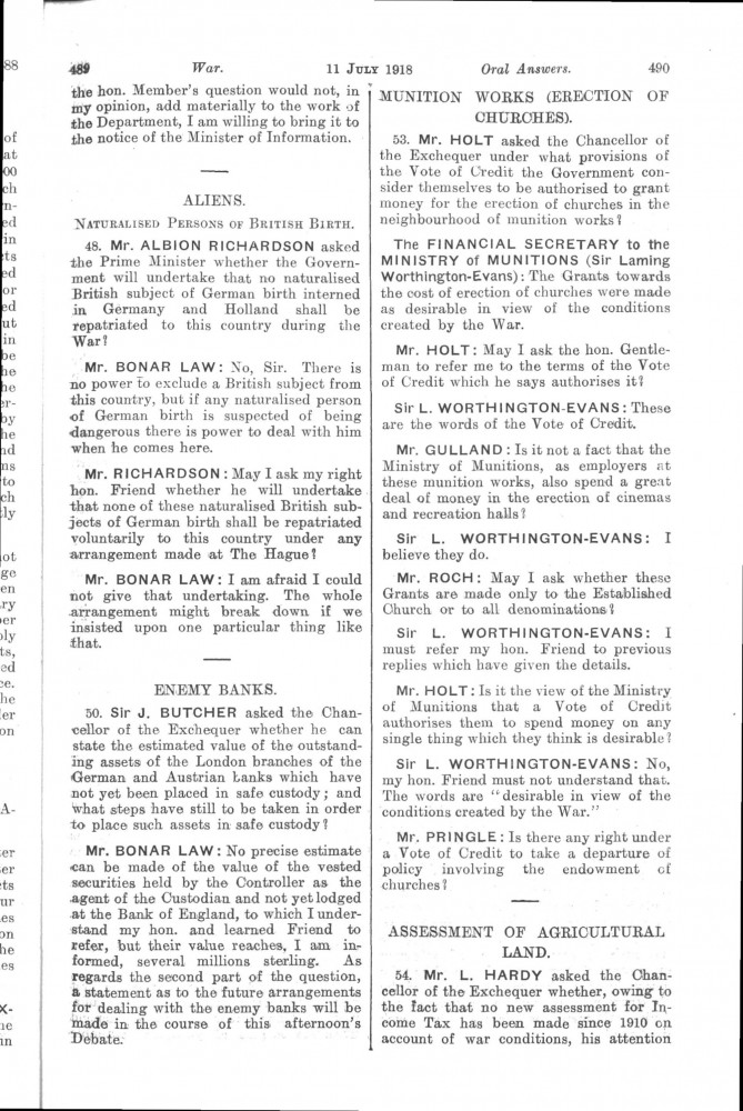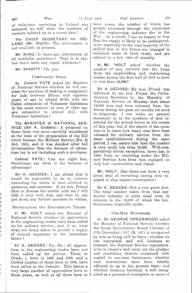 Parliamentary Debates. House of Commons. Thursday, 11 November 1918. Vol. 108, No. 77. Official Report. Columns 534, 535 marked up.