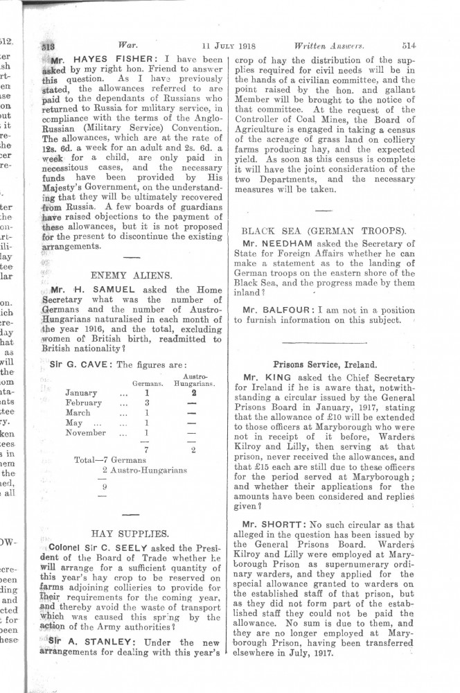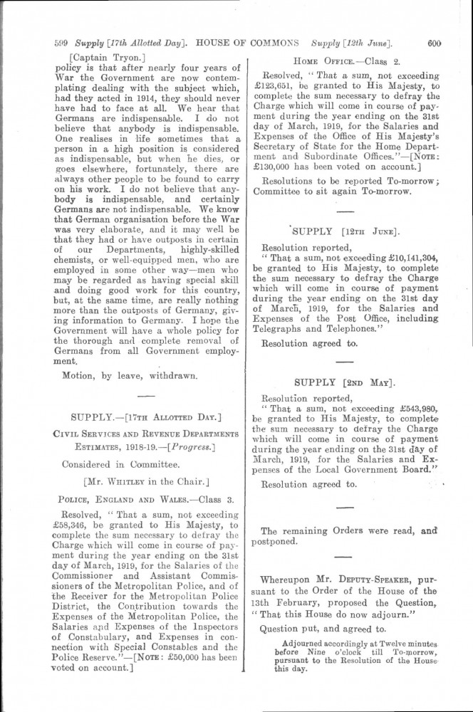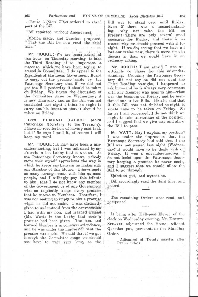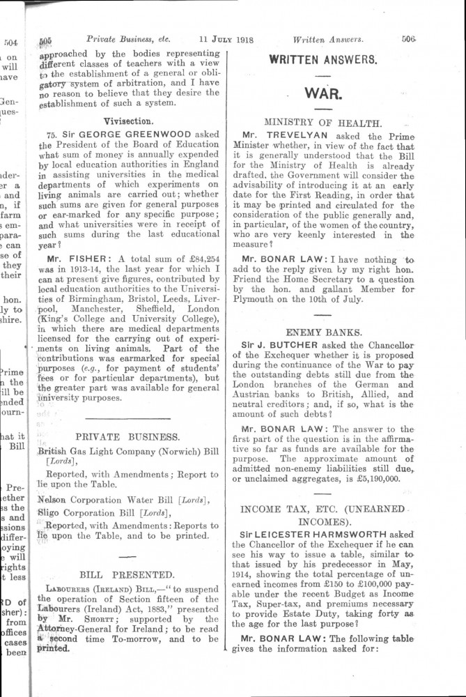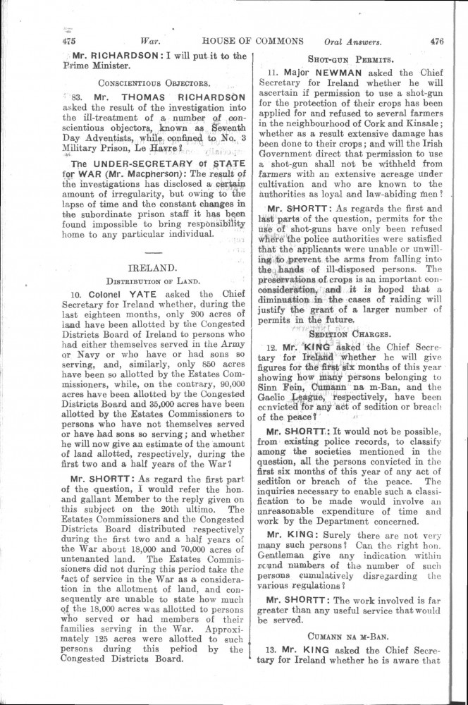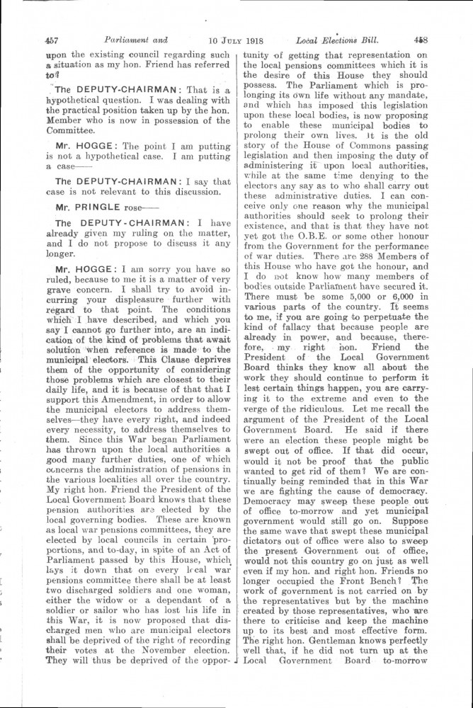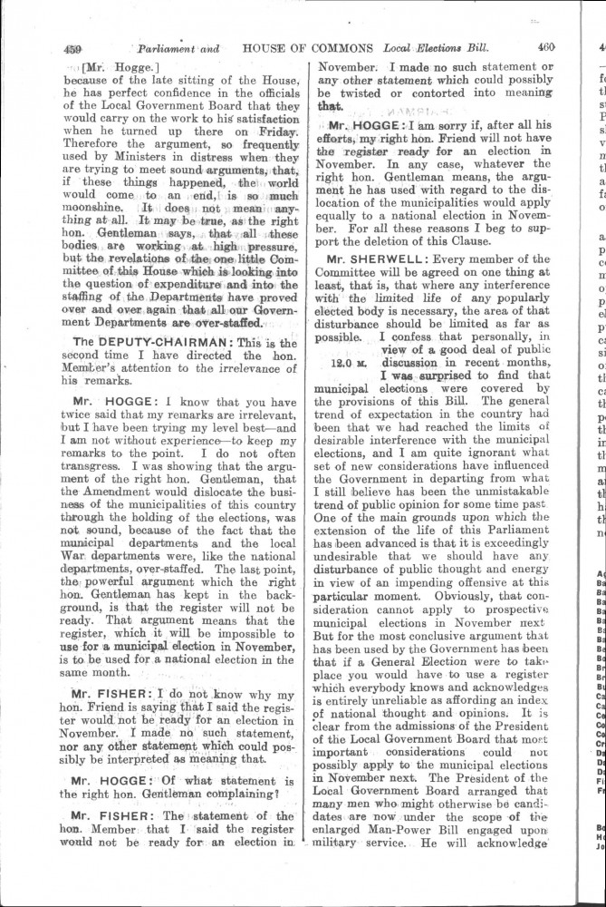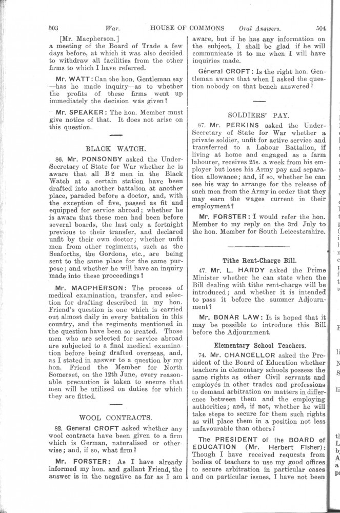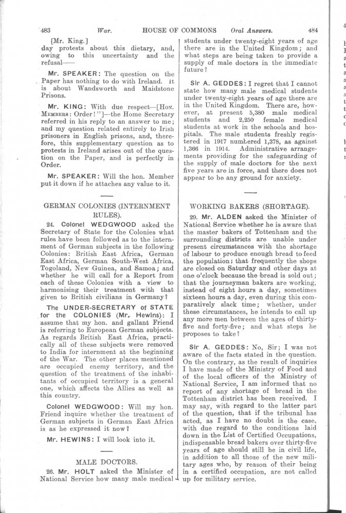 Parliamentary Debates. House of Commons. Thursday, 11 November 1918. Vol. 108, No. 77. Official Report. Columns 534, 535 marked up.