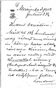 Thank-you note for the de Lászlós’ hospitality in London. Request for a copy/photograph of a letter to Rembrandt for an article, possibly to be written by Andor Kozma.