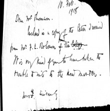 • Letter from Basil Thomson to Lucy de László, Internment Material Folder 51, 166-0057