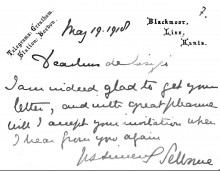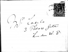 Envelope addressed to Lucy de László from Lord Sheffield; "Lord Sheffield – answered" written on verso of envelope