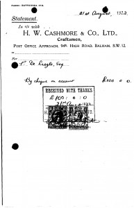 • Statement of account from H. W. Cashmore & Co. Ltd. to de László, Studio Correspondence Nov 1920 - Apr 1924 Various Art Societ, 105-0126