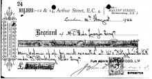 Receipt for de László's payment for work to the studio, Fitzjohn's Avenue.