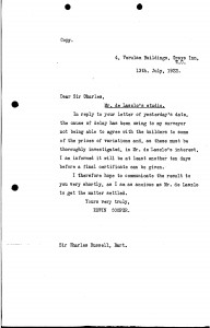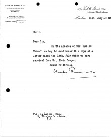Charles Russell & Co. send a copy of a letter received from Sir Edwin Cooper [See DLA105-0132].