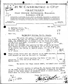 • Letter from H. W. Cashmore & Co. Ltd. to de László, Studio Correspondence Nov 1920 - Apr 1924 Various Art Societ, 105-0137