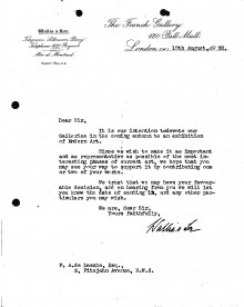 The Archive Filter search More options DLA number submit Date All 1892 1893 1894 1895 1896 1897 1898 1899 1900 1901 1902 1903 1904 1905 1906 1907 1908 1909 1910 1911 1912 1913 1914 1915 1916 1917 1918 1919 1920 1921 1922 1923 1924 1925 1926 1927 1928 1929 1930 1931 1932 1933 1934 1935 1936 1937 1956 1986 2016 Sender / Creator All “Árpád” Cooperative Society (2) Abels, Ludwig (1867 - 1937) (1) Aberconway, Charles Benjamin Bright McLaren, 1st Baron (1850 - 1934) (5) Acton of Aldenham, Richard Maximilian Lyon-Dalberg-Acton, 2nd Baron (1870 - 1924) (1) Aczél, Madame Edward [née Anny, surname unknown] (1) Agen, Boyer d' (1857 - 1945) (3) Agnew, William Lockett (1858 - 1918) (2) Ahlefeldt-Laurvig, Count Preben Ferdinand (1872 - 1946) (1) Aiken, William (1880-1950) (2) Ainger, Arthur Campbell (1841-1919) (1) Ainsworth, J.S. (1) Airlie, Mabell Ogilvy, Countess of [née Lady Mabell Frances Elizabeth Gore]; wife of 11th Earl (1866 - 1956) (1) Albemarle, Arnold Allan Cecil Keppel, 8th Earl of (1858 - 1942) (4) Albemarle, Gertrude Keppel, Countess of [née Lady Gertrude Lucia Egerton]; wife of 8th Earl (1861 - 1943) (1) Alexander, Mrs John White [née Elizabeth Alexander] (1) Alfred, G. (4) Allez, Mrs Jacques [née Mary Astor Paul; other married name Mrs Charles A. Munn] (1889 - 1950) (4) Almásy, László (1869 - 1936) (1) Amshewitz, John Henry (1882 - 1942) (6) Andrassy de Csíkszentkirály et Krasznahorka the Younger, Count Gyula (1860 - 1929) (1) Annesley, Priscilla Annesley, Countess of [née Priscilla Cecilia Armitage Moore]; wife of 5th Earl (1892 - 1941) (1) Anson, Sir William Reynell, 3rd Baronet (1843 - 1914) (1) Anthony, Geo. Hy. (1) Apponyi de Nagyappony, Count Albert (1846 - 1933) (1) Apsley, Allen Algernon Bathurst, Lord (1895 - 1942) (1) Aramon, Rita d' (1) Armstrong, Ronald (1) Armstrong, Sir Walter (1850 - 1918) (1) Arti et Amicitiae (1) Asquith, Lady Cynthia Mary Evelyn [nee Charteris] (1887-1960) (1) Astley, Mrs Philip [née Madeleine Carroll; other married names Mrs Sterling Hayden, Mrs Henri Lavorel and Mrs Andrew Heiskell] (1906 - 1987) (1) Astor of Hever, Lady [née Lady Violet Mary Elliot-Murray-Kynynmound; other married name Lady Charles Petty-Fitzmaurice] (1889 - 1965) (1) Athlone, Princess Alice of [née Princess Alice of Albany]; wife of 1st Earl (1883 - 1981) (6) Austria, Archduchess Friedrich of [née Princess Isabella von Croÿ-Dülmen] (1856 - 1931) (3) Austria, Archduke Ludwig Viktor of (1842 - 1919) (1) Aybar, Miguel González de Castejón y Elío, I conde de (1862 - 1939) (1) B. Holden & Co. (1) Bacsich, Máté (2) Baden-Powell, Lord Robert Stephenson Smyth Baden-Powell, 1st Baron (1857 - 1941) (2) Baden, Margravine of [née Princess Theodora of Greece and Denmark]; wife of Prince Berthold (1906 - 1969) (1) Baeyens, Baronne Marcel [née Suzanne Desmons] (1884 - 1949) (6) Bailey, J. R. (16) Bajza, Aladár (1) Baker, Constable Albert (1) Baldry, Alfred Lys (1858 - 1939) (48) Baldwin of Bewdley, Stanley Baldwin, 1st Earl (1867 - 1947) (1) Balfour of Dawyk, Lieutenant-Colonel Frederick Robert Stephen (1873 - 1945) (1) Balfour, Arthur James Balfour, 1st Earl of (1848 - 1930) (2) Bálint, Zoltán (1871 - 1939) (1) Balló, Ede (1859 - 1936) (10) Balló, Mrs Ede [née Margit Vámossy] (2) Balog, Elemér (1881 - 1955) (1) Balogh, Loránd Almási (1) Bankes, Mrs Walter Ralph [née Henrietta Jenny Fraser] (1871 - 1953) (1) Barbour, Doctor Alexander Hugh Freeland (1856 - 1927) (1) Barclays Bank Ltd. (1) Bárczy de Bárcziháza, István (1882 - 1952) (10) Bárczy de Bárcziháza, Madame István [née Edit Luczenbacher de Szob] (1888 - 1973) (2) Bárdossy, László (1890 - 1946) (2) Baring, Lady Ulrica [née Lady Ulrica Dunscombe] (1875-1935); wife of Brigadier-General the Hon. Everard Baring (1875 - 1935) (1) Barnaby, J. (3) Barratt, John Arthur (1857-1944) (1) Bath, Thomas Henry Thynne, 5th Marquess of (1862 - 1946) (1) Bathurst, C. J. (1) Bathurst, Countess [née Lilias Margaret Frances Borthwick] (1871 - 1965) (2) Battersea, Constance Flower, Baroness [née Constance de Rothschild]; wife of 1st Baron (1843 - 1931) (3) Baumann, Gyula (1) Bayer, Ágost (1892 - 1958) (1) Beal, Boylston Adams (1865-1944) (1) Beatty, John W. (1851 - 1924) (3) Beatty, Lady [née Mino Edith Dunn; other married name Mrs Carol D. Stone] (1886 - 1952) (2) Beauclerk, Lady Alexandra 'Alix' de Vere (1878 - 1935) (1) Beddington, Mrs Claude [née Frances Ethel Homan-Mulock] (1880 - 1963) (1) Beer, Esmond Samuel de (1895 - 1990) (1) Bell, George Kennedy Allen, Bishop of Chichester (1883 - 1958) (1) Belloc Lowndes, Mrs Marie Adelaide (1868-1947) (2) Bélugou, Léon (1865 - 1934) (8) Benczúr, Mrs Gyula (1) Bendir, Arthur ( - 1957) (8) Benedek, Atilla (1) Bénédite, Léonce (1859 - 1925) (2) Bénédite, Rosa (2) Benkő, Kálmán (1) Benlliure Gil, Professor Mariano (1862 - 1947) (7) Bennett Dampier, Lieutenant Colonel William Henry (c. 1869 - 1930) (1) Benson, Mrs Robert Henry [née Evelyn Holford] (1856 - 1943) (1) Benthall, F. Bernard (1) Berényi, Gyula (1) Berkeley Wills, Gerald (1882 - 1979) (23) Berks, Hugo Reichsritter von (1841 - 1906) (1) Berzeviczy de Berzevicze et Kakaslomnicz, Albert (1853 - 1936) (1) Bevan, G. L. (1) Bihari, Mrs Sándor (1) Bilkei Gorzó, Nándor (1) Birley, Sir Oswald (1880-1952) (4) Biron von Curland, Gustav Peter Johannes, Prince (1859 - 1941) (1) Blair, G. (1) Blaschczik, Johann (1866-1936) (1) Bligh, Ada Theodosia (3) Blomfield, Sir Reginald Theodore (1856-1942) (1) Bókay, Professor János (1858 - 1937) (3) Bone, Sir Muirhead (1876-1953) (1) Boross, Jenő (1868 - 1942) (4) Boross, Samu (1) Bosdari, Count Alessandro De (1867-1929) (1) Bossányi, Ervin (1891 - 1975) (1) Bottomley, Horatio William (1860 - 1933) (3) Bourbon, Diana (1) Bourne, His Eminence Cardinal Francis Alphonsus (1861 - 1935) (1) Bowen & Mallon (1) Bowlby, Arthur Salvin (1872-1932) (1) Bowlby, Mrs Arthur Salvin [née Catherine Mary Bond] (1875 - 1943) (3) Bowlby, Mrs Edward Salvin [née Elizabeth Va