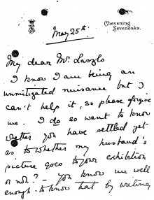 The Archive Filter search More options DLA number submit Date All 1892 1893 1894 1895 1896 1897 1898 1899 1900 1901 1902 1903 1904 1905 1906 1907 1908 1909 1910 1911 1912 1913 1914 1915 1916 1917 1918 1919 1920 1921 1922 1923 1924 1925 1926 1927 1928 1929 1930 1931 1932 1933 1934 1935 1936 1937 1956 1986 2016 Sender / Creator All “Árpád” Cooperative Society (2) Abels, Ludwig (1867 - 1937) (1) Aberconway, Charles Benjamin Bright McLaren, 1st Baron (1850 - 1934) (5) Acton of Aldenham, Richard Maximilian Lyon-Dalberg-Acton, 2nd Baron (1870 - 1924) (1) Aczél, Madame Edward [née Anny, surname unknown] (1) Agen, Boyer d' (1857 - 1945) (3) Agnew, William Lockett (1858 - 1918) (2) Ahlefeldt-Laurvig, Count Preben Ferdinand (1872 - 1946) (1) Aiken, William (1880-1950) (2) Ainger, Arthur Campbell (1841-1919) (1) Ainsworth, J.S. (1) Airlie, Mabell Ogilvy, Countess of [née Lady Mabell Frances Elizabeth Gore]; wife of 11th Earl (1866 - 1956) (1) Albemarle, Arnold Allan Cecil Keppel, 8th Earl of (1858 - 1942) (4) Albemarle, Gertrude Keppel, Countess of [née Lady Gertrude Lucia Egerton]; wife of 8th Earl (1861 - 1943) (1) Alexander, Mrs John White [née Elizabeth Alexander] (1) Alfred, G. (4) Allez, Mrs Jacques [née Mary Astor Paul; other married name Mrs Charles A. Munn] (1889 - 1950) (4) Almásy, László (1869 - 1936) (1) Amshewitz, John Henry (1882 - 1942) (6) Andrassy de Csíkszentkirály et Krasznahorka the Younger, Count Gyula (1860 - 1929) (1) Annesley, Priscilla Annesley, Countess of [née Priscilla Cecilia Armitage Moore]; wife of 5th Earl (1892 - 1941) (1) Anson, Sir William Reynell, 3rd Baronet (1843 - 1914) (1) Anthony, Geo. Hy. (1) Apponyi de Nagyappony, Count Albert (1846 - 1933) (1) Apsley, Allen Algernon Bathurst, Lord (1895 - 1942) (1) Aramon, Rita d' (1) Armstrong, Ronald (1) Armstrong, Sir Walter (1850 - 1918) (1) Arti et Amicitiae (1) Asquith, Lady Cynthia Mary Evelyn [nee Charteris] (1887-1960) (1) Astley, Mrs Philip [née Madeleine Carroll; other married names Mrs Sterling Hayden, Mrs Henri Lavorel and Mrs Andrew Heiskell] (1906 - 1987) (1) Astor of Hever, Lady [née Lady Violet Mary Elliot-Murray-Kynynmound; other married name Lady Charles Petty-Fitzmaurice] (1889 - 1965) (1) Athlone, Princess Alice of [née Princess Alice of Albany]; wife of 1st Earl (1883 - 1981) (6) Austria, Archduchess Friedrich of [née Princess Isabella von Croÿ-Dülmen] (1856 - 1931) (3) Austria, Archduke Ludwig Viktor of (1842 - 1919) (1) Aybar, Miguel González de Castejón y Elío, I conde de (1862 - 1939) (1) B. Holden & Co. (1) Bacsich, Máté (2) Baden-Powell, Lord Robert Stephenson Smyth Baden-Powell, 1st Baron (1857 - 1941) (2) Baden, Margravine of [née Princess Theodora of Greece and Denmark]; wife of Prince Berthold (1906 - 1969) (1) Baeyens, Baronne Marcel [née Suzanne Desmons] (1884 - 1949) (6) Bailey, J. R. (16) Bajza, Aladár (1) Baker, Constable Albert (1) Baldry, Alfred Lys (1858 - 1939) (48) Baldwin of Bewdley, Stanley Baldwin, 1st Earl (1867 - 1947) (1) Balfour of Dawyk, Lieutenant-Colonel Frederick Robert Stephen (1873 - 1945) (1) Balfour, Arthur James Balfour, 1st Earl of (1848 - 1930) (2) Bálint, Zoltán (1871 - 1939) (1) Balló, Ede (1859 - 1936) (10) Balló, Mrs Ede [née Margit Vámossy] (2) Balog, Elemér (1881 - 1955) (1) Balogh, Loránd Almási (1) Bankes, Mrs Walter Ralph [née Henrietta Jenny Fraser] (1871 - 1953) (1) Barbour, Doctor Alexander Hugh Freeland (1856 - 1927) (1) Barclays Bank Ltd. (1) Bárczy de Bárcziháza, István (1882 - 1952) (10) Bárczy de Bárcziháza, Madame István [née Edit Luczenbacher de Szob] (1888 - 1973) (2) Bárdossy, László (1890 - 1946) (2) Baring, Lady Ulrica [née Lady Ulrica Dunscombe] (1875-1935); wife of Brigadier-General the Hon. Everard Baring (1875 - 1935) (1) Barnaby, J. (3) Barratt, John Arthur (1857-1944) (1) Bath, Thomas Henry Thynne, 5th Marquess of (1862 - 1946) (1) Bathurst, C. J. (1) Bathurst, Countess [née Lilias Margaret Frances Borthwick] (1871 - 1965) (2) Battersea, Constance Flower, Baroness [née Constance de Rothschild]; wife of 1st Baron (1843 - 1931) (3) Baumann, Gyula (1) Bayer, Ágost (1892 - 1958) (1) Beal, Boylston Adams (1865-1944) (1) Beatty, John W. (1851 - 1924) (3) Beatty, Lady [née Mino Edith Dunn; other married name Mrs Carol D. Stone] (1886 - 1952) (2) Beauclerk, Lady Alexandra 'Alix' de Vere (1878 - 1935) (1) Beddington, Mrs Claude [née Frances Ethel Homan-Mulock] (1880 - 1963) (1) Beer, Esmond Samuel de (1895 - 1990) (1) Bell, George Kennedy Allen, Bishop of Chichester (1883 - 1958) (1) Belloc Lowndes, Mrs Marie Adelaide (1868-1947) (2) Bélugou, Léon (1865 - 1934) (8) Benczúr, Mrs Gyula (1) Bendir, Arthur ( - 1957) (8) Benedek, Atilla (1) Bénédite, Léonce (1859 - 1925) (2) Bénédite, Rosa (2) Benkő, Kálmán (1) Benlliure Gil, Professor Mariano (1862 - 1947) (7) Bennett Dampier, Lieutenant Colonel William Henry (c. 1869 - 1930) (1) Benson, Mrs Robert Henry [née Evelyn Holford] (1856 - 1943) (1) Benthall, F. Bernard (1) Berényi, Gyula (1) Berkeley Wills, Gerald (1882 - 1979) (23) Berks, Hugo Reichsritter von (1841 - 1906) (1) Berzeviczy de Berzevicze et Kakaslomnicz, Albert (1853 - 1936) (1) Bevan, G. L. (1) Bihari, Mrs Sándor (1) Bilkei Gorzó, Nándor (1) Birley, Sir Oswald (1880-1952) (4) Biron von Curland, Gustav Peter Johannes, Prince (1859 - 1941) (1) Blair, G. (1) Blaschczik, Johann (1866-1936) (1) Bligh, Ada Theodosia (3) Blomfield, Sir Reginald Theodore (1856-1942) (1) Bókay, Professor János (1858 - 1937) (3) Bone, Sir Muirhead (1876-1953) (1) Boross, Jenő (1868 - 1942) (4) Boross, Samu (1) Bosdari, Count Alessandro De (1867-1929) (1) Bossányi, Ervin (1891 - 1975) (1) Bottomley, Horatio William (1860 - 1933) (3) Bourbon, Diana (1) Bourne, His Eminence Cardinal Francis Alphonsus (1861 - 1935) (1) Bowen & Mallon (1) Bowlby, Arthur Salvin (1872-1932) (1) Bowlby, Mrs Arthur Salvin [née Catherine Mary Bond] (1875 - 1943) (3) Bowlby, Mrs Edward Salvin [née Elizabeth Va
