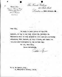 The Archive Filter search More options DLA number submit Date All 1892 1893 1894 1895 1896 1897 1898 1899 1900 1901 1902 1903 1904 1905 1906 1907 1908 1909 1910 1911 1912 1913 1914 1915 1916 1917 1918 1919 1920 1921 1922 1923 1924 1925 1926 1927 1928 1929 1930 1931 1932 1933 1934 1935 1936 1937 1956 1986 2016 Sender / Creator All “Árpád” Cooperative Society (2) Abels, Ludwig (1867 - 1937) (1) Aberconway, Charles Benjamin Bright McLaren, 1st Baron (1850 - 1934) (5) Acton of Aldenham, Richard Maximilian Lyon-Dalberg-Acton, 2nd Baron (1870 - 1924) (1) Aczél, Madame Edward [née Anny, surname unknown] (1) Agen, Boyer d' (1857 - 1945) (3) Agnew, William Lockett (1858 - 1918) (2) Ahlefeldt-Laurvig, Count Preben Ferdinand (1872 - 1946) (1) Aiken, William (1880-1950) (2) Ainger, Arthur Campbell (1841-1919) (1) Ainsworth, J.S. (1) Airlie, Mabell Ogilvy, Countess of [née Lady Mabell Frances Elizabeth Gore]; wife of 11th Earl (1866 - 1956) (1) Albemarle, Arnold Allan Cecil Keppel, 8th Earl of (1858 - 1942) (4) Albemarle, Gertrude Keppel, Countess of [née Lady Gertrude Lucia Egerton]; wife of 8th Earl (1861 - 1943) (1) Alexander, Mrs John White [née Elizabeth Alexander] (1) Alfred, G. (4) Allez, Mrs Jacques [née Mary Astor Paul; other married name Mrs Charles A. Munn] (1889 - 1950) (4) Almásy, László (1869 - 1936) (1) Amshewitz, John Henry (1882 - 1942) (6) Andrassy de Csíkszentkirály et Krasznahorka the Younger, Count Gyula (1860 - 1929) (1) Annesley, Priscilla Annesley, Countess of [née Priscilla Cecilia Armitage Moore]; wife of 5th Earl (1892 - 1941) (1) Anson, Sir William Reynell, 3rd Baronet (1843 - 1914) (1) Anthony, Geo. Hy. (1) Apponyi de Nagyappony, Count Albert (1846 - 1933) (1) Apsley, Allen Algernon Bathurst, Lord (1895 - 1942) (1) Aramon, Rita d' (1) Armstrong, Ronald (1) Armstrong, Sir Walter (1850 - 1918) (1) Arti et Amicitiae (1) Asquith, Lady Cynthia Mary Evelyn [nee Charteris] (1887-1960) (1) Astley, Mrs Philip [née Madeleine Carroll; other married names Mrs Sterling Hayden, Mrs Henri Lavorel and Mrs Andrew Heiskell] (1906 - 1987) (1) Astor of Hever, Lady [née Lady Violet Mary Elliot-Murray-Kynynmound; other married name Lady Charles Petty-Fitzmaurice] (1889 - 1965) (1) Athlone, Princess Alice of [née Princess Alice of Albany]; wife of 1st Earl (1883 - 1981) (6) Austria, Archduchess Friedrich of [née Princess Isabella von Croÿ-Dülmen] (1856 - 1931) (3) Austria, Archduke Ludwig Viktor of (1842 - 1919) (1) Aybar, Miguel González de Castejón y Elío, I conde de (1862 - 1939) (1) B. Holden & Co. (1) Bacsich, Máté (2) Baden-Powell, Lord Robert Stephenson Smyth Baden-Powell, 1st Baron (1857 - 1941) (2) Baden, Margravine of [née Princess Theodora of Greece and Denmark]; wife of Prince Berthold (1906 - 1969) (1) Baeyens, Baronne Marcel [née Suzanne Desmons] (1884 - 1949) (6) Bailey, J. R. (16) Bajza, Aladár (1) Baker, Constable Albert (1) Baldry, Alfred Lys (1858 - 1939) (48) Baldwin of Bewdley, Stanley Baldwin, 1st Earl (1867 - 1947) (1) Balfour of Dawyk, Lieutenant-Colonel Frederick Robert Stephen (1873 - 1945) (1) Balfour, Arthur James Balfour, 1st Earl of (1848 - 1930) (2) Bálint, Zoltán (1871 - 1939) (1) Balló, Ede (1859 - 1936) (10) Balló, Mrs Ede [née Margit Vámossy] (2) Balog, Elemér (1881 - 1955) (1) Balogh, Loránd Almási (1) Bankes, Mrs Walter Ralph [née Henrietta Jenny Fraser] (1871 - 1953) (1) Barbour, Doctor Alexander Hugh Freeland (1856 - 1927) (1) Barclays Bank Ltd. (1) Bárczy de Bárcziháza, István (1882 - 1952) (10) Bárczy de Bárcziháza, Madame István [née Edit Luczenbacher de Szob] (1888 - 1973) (2) Bárdossy, László (1890 - 1946) (2) Baring, Lady Ulrica [née Lady Ulrica Dunscombe] (1875-1935); wife of Brigadier-General the Hon. Everard Baring (1875 - 1935) (1) Barnaby, J. (3) Barratt, John Arthur (1857-1944) (1) Bath, Thomas Henry Thynne, 5th Marquess of (1862 - 1946) (1) Bathurst, C. J. (1) Bathurst, Countess [née Lilias Margaret Frances Borthwick] (1871 - 1965) (2) Battersea, Constance Flower, Baroness [née Constance de Rothschild]; wife of 1st Baron (1843 - 1931) (3) Baumann, Gyula (1) Bayer, Ágost (1892 - 1958) (1) Beal, Boylston Adams (1865-1944) (1) Beatty, John W. (1851 - 1924) (3) Beatty, Lady [née Mino Edith Dunn; other married name Mrs Carol D. Stone] (1886 - 1952) (2) Beauclerk, Lady Alexandra 'Alix' de Vere (1878 - 1935) (1) Beddington, Mrs Claude [née Frances Ethel Homan-Mulock] (1880 - 1963) (1) Beer, Esmond Samuel de (1895 - 1990) (1) Bell, George Kennedy Allen, Bishop of Chichester (1883 - 1958) (1) Belloc Lowndes, Mrs Marie Adelaide (1868-1947) (2) Bélugou, Léon (1865 - 1934) (8) Benczúr, Mrs Gyula (1) Bendir, Arthur ( - 1957) (8) Benedek, Atilla (1) Bénédite, Léonce (1859 - 1925) (2) Bénédite, Rosa (2) Benkő, Kálmán (1) Benlliure Gil, Professor Mariano (1862 - 1947) (7) Bennett Dampier, Lieutenant Colonel William Henry (c. 1869 - 1930) (1) Benson, Mrs Robert Henry [née Evelyn Holford] (1856 - 1943) (1) Benthall, F. Bernard (1) Berényi, Gyula (1) Berkeley Wills, Gerald (1882 - 1979) (23) Berks, Hugo Reichsritter von (1841 - 1906) (1) Berzeviczy de Berzevicze et Kakaslomnicz, Albert (1853 - 1936) (1) Bevan, G. L. (1) Bihari, Mrs Sándor (1) Bilkei Gorzó, Nándor (1) Birley, Sir Oswald (1880-1952) (4) Biron von Curland, Gustav Peter Johannes, Prince (1859 - 1941) (1) Blair, G. (1) Blaschczik, Johann (1866-1936) (1) Bligh, Ada Theodosia (3) Blomfield, Sir Reginald Theodore (1856-1942) (1) Bókay, Professor János (1858 - 1937) (3) Bone, Sir Muirhead (1876-1953) (1) Boross, Jenő (1868 - 1942) (4) Boross, Samu (1) Bosdari, Count Alessandro De (1867-1929) (1) Bossányi, Ervin (1891 - 1975) (1) Bottomley, Horatio William (1860 - 1933) (3) Bourbon, Diana (1) Bourne, His Eminence Cardinal Francis Alphonsus (1861 - 1935) (1) Bowen & Mallon (1) Bowlby, Arthur Salvin (1872-1932) (1) Bowlby, Mrs Arthur Salvin [née Catherine Mary Bond] (1875 - 1943) (3) Bowlby, Mrs Edward Salvin [née Elizabeth Va