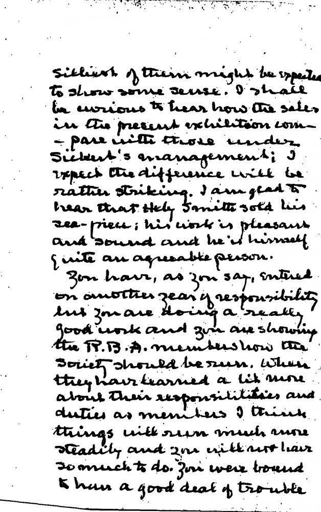 Letter largely concerns the RBA, its current exhibition and de László's positive impact upon the society as its president. Baldry suggests de László finish the picture of Lucy, Paul and Patrick [8280] and exhibit it at the RBA in the autumn.