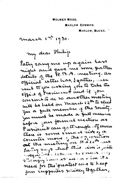 Letter regarding the presidency of the RBA and the factions who will both support and oppose de László's nomination to the position.