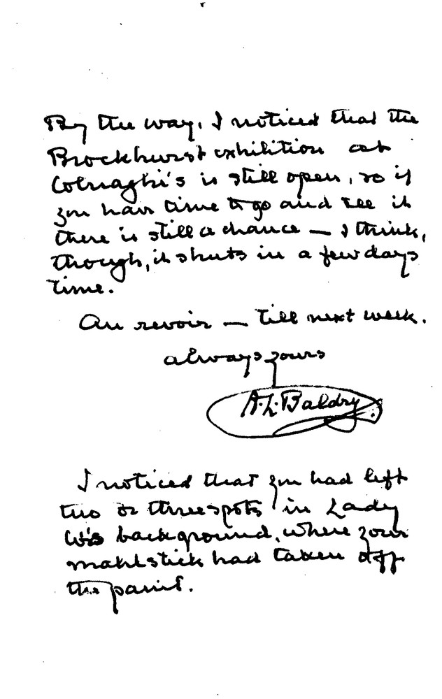 Letter from Alfred Lys Baldry to de László, Re-sleeved Material from Box S Private 1899-1916, Box Privat, 116-0073