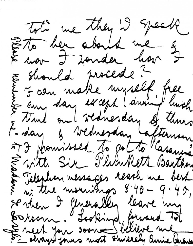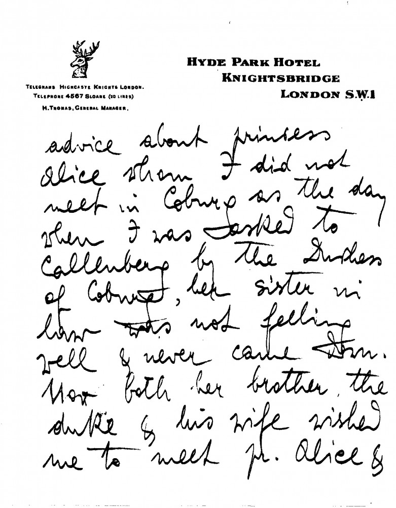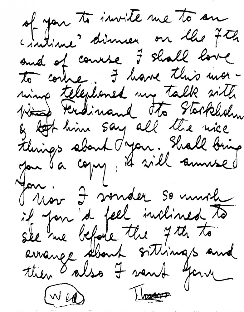 Annie Quensel will attend de László's dinner; will bring a copy of her talk with King Ferdinand of Bulgaria. Would like to arrange portrait sittings [111430] and get de László's advice on Princess Alice.