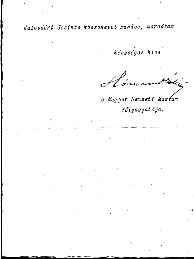Multiple letters. Letter dated 18 February 1924 from Bálint Hóman to de László thanking the artist for his gift to the National Széchenyi Library (presumed to be Oakley Williams' edited publication, "Selections from The Work of P.A. de László", see also DLA035-0133). Hóman encloses his inaugural speech as Director General of the Hungarian National Museum. Second letter is a draft reply in de László's hand thanking Hóman for the copy of the inaugural speech. He reminisces about his childhood visits to the picture gallery. "I remember nearly every one of the pictures", he writes (item was previously archived with DLA015-0023) (DLA015-0080 ref'd in Hart-Davis as DLA015-0023, ch1, p4, fn14, notes p288).