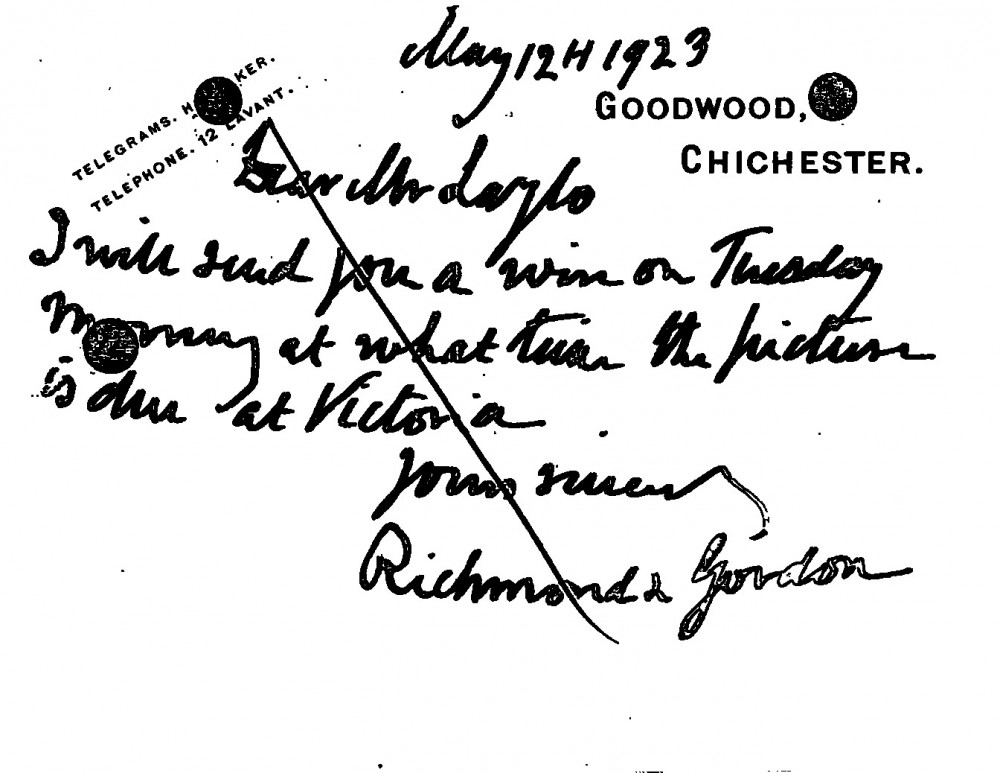 Transportation of the picture [6841] for de László's exhibition (French Gallery, June 1923).