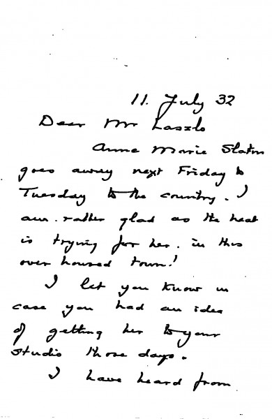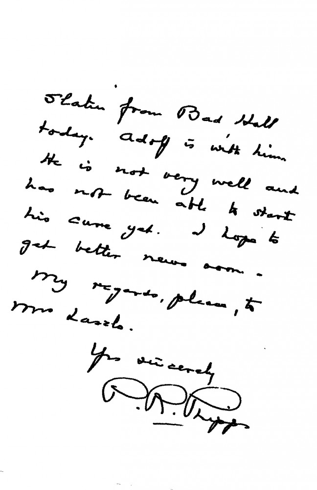 Colonel P. R. Phipps informs de László of Baroness Anne Marie von Slatin's travel plans; Sir Rudolf von Slatin is ill.
