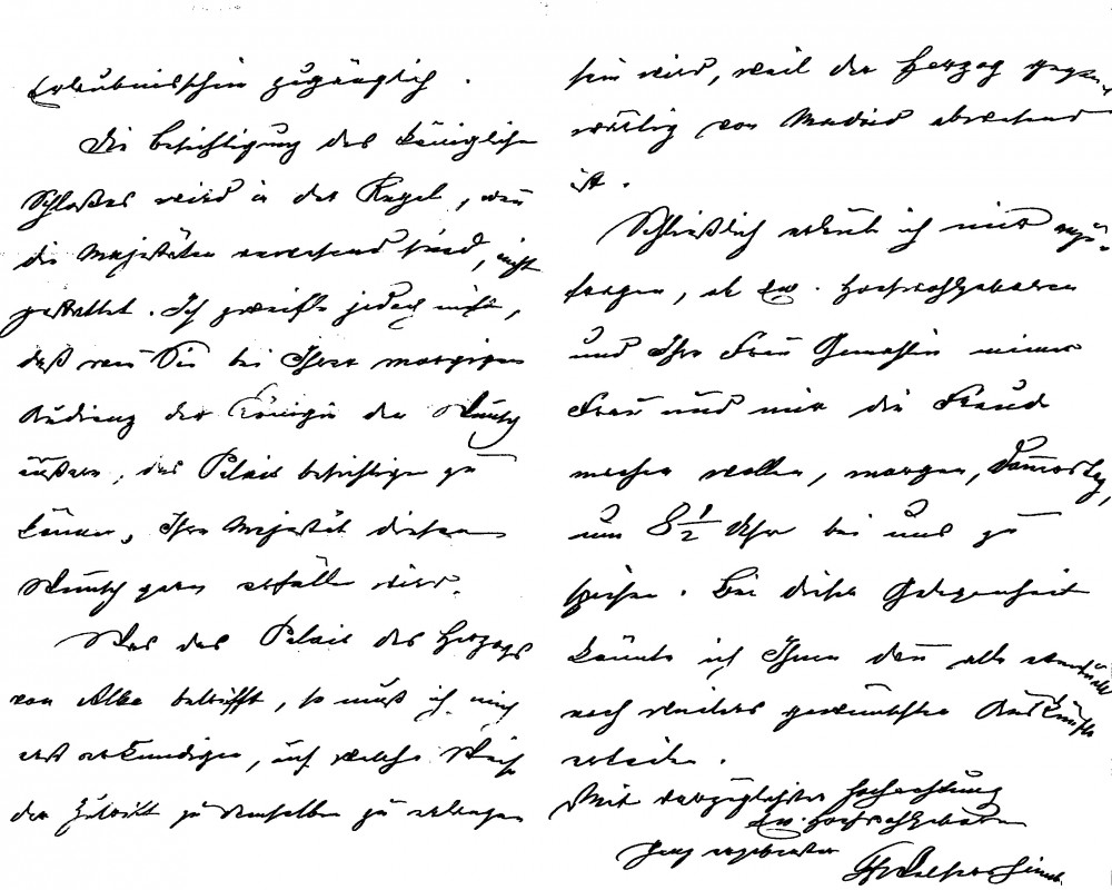 Replying to a letter from de László with information on the Queen Mother's audience times as well as viewing of the Arms Collections and Royal Palace. The sender also offers an invitation to Lucy and de László.