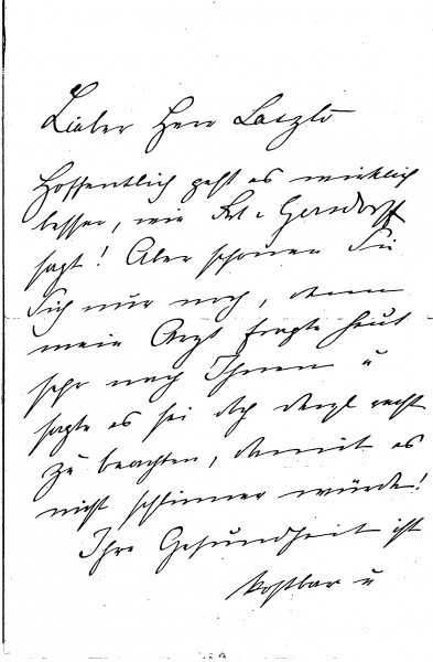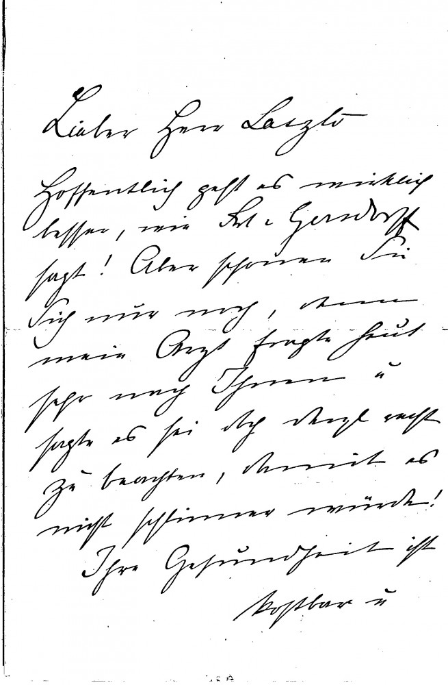Countess Brockdorff wishes de László improved health, advises him to take care and be patient, noting that the Empress remains at home with the unwell Emperor. She expresses delight at his baby picture.