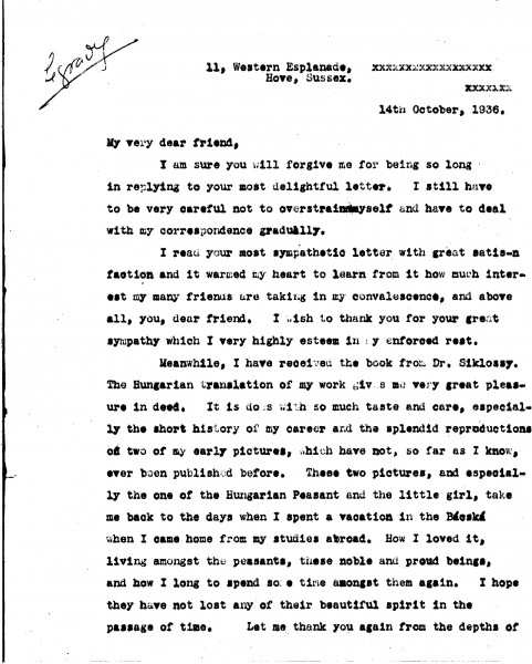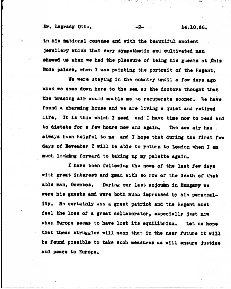 Letter from de László to Dr Ottó Légrády, Personal Letters from 1st Jan 1936 to 30th June 1937, 024-0211
