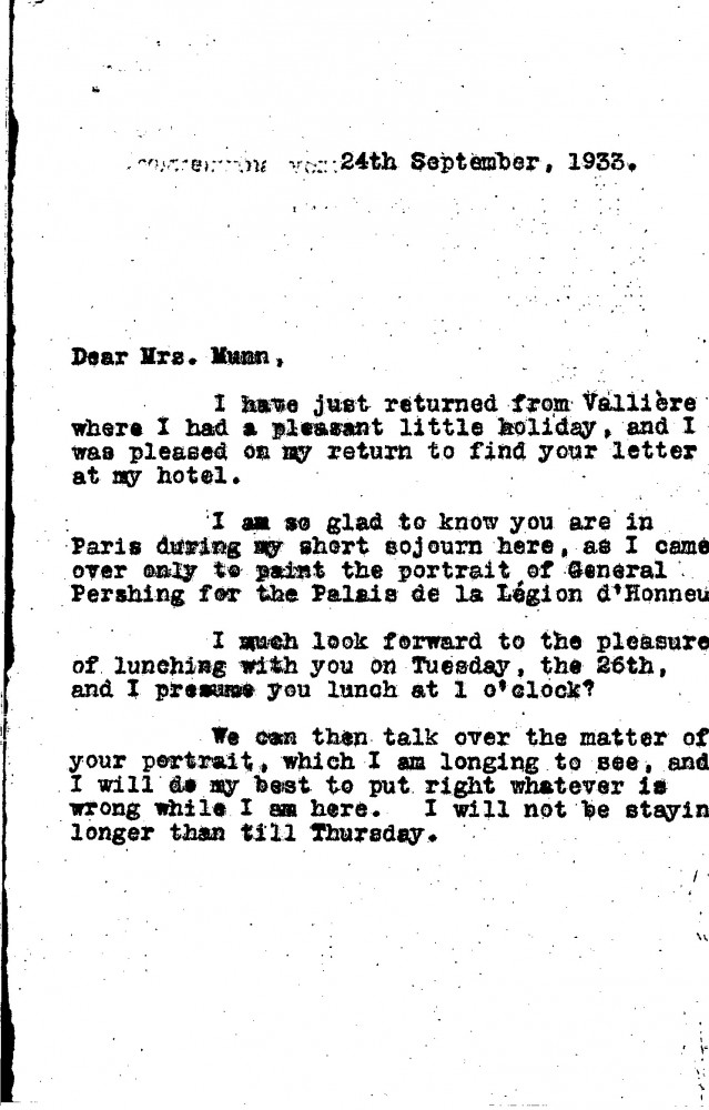 Letter from Mrs Charles Munn to de László, Personal Letters, 020-0287