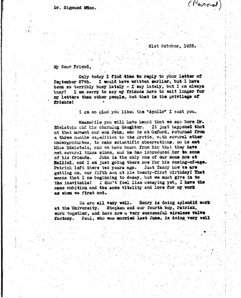 He has met Dr. Edelstein and his daughter Carola (see DLA020-0296). General family news. Travel plans to America. Currently painting Lord Carson's portrait [3975]. Has not met the sculptor Felix Weiss. Still possessed of the "same ambition", "same vitality and love for my work as when we first met". De László is working on his book, which "will one day be a historic document".