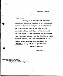Letter from de László's secretary to Messrs. Wallis & Son, Exhibitions French Gallery 1929, 114-0074