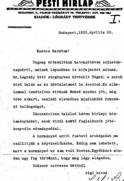 Letter from de László to Dr László Siklóssy, Siklóssy Coupures Album, 138-0012